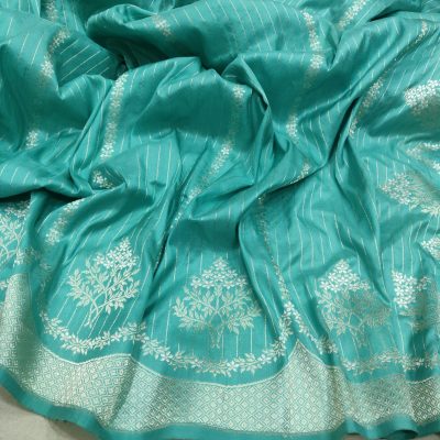 Turquoise sarees represent creativity and positivity. This vibrant yet calming color infuses your wedding day with optimism and a fresh outlook on life. It’s an excellent choice for brides who radiate positivity.