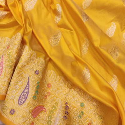 Yellow sarees represent happiness, positivity, and joy. They are perfect for brides who want to spread warmth and cheer on their special day. Yellow is a color of optimism and optimism.