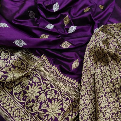 Violet sarees represent creativity and individuality. Brides who opt for this hue often have a strong sense of self and appreciate expressing their unique personality on their wedding day.