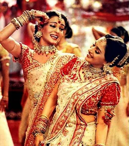 Movie- ‘Devdas’ “Dola Re” The coordinated white-and-red Bengali sarees in ‘Devdas’ left a visual impact in Bollywood.