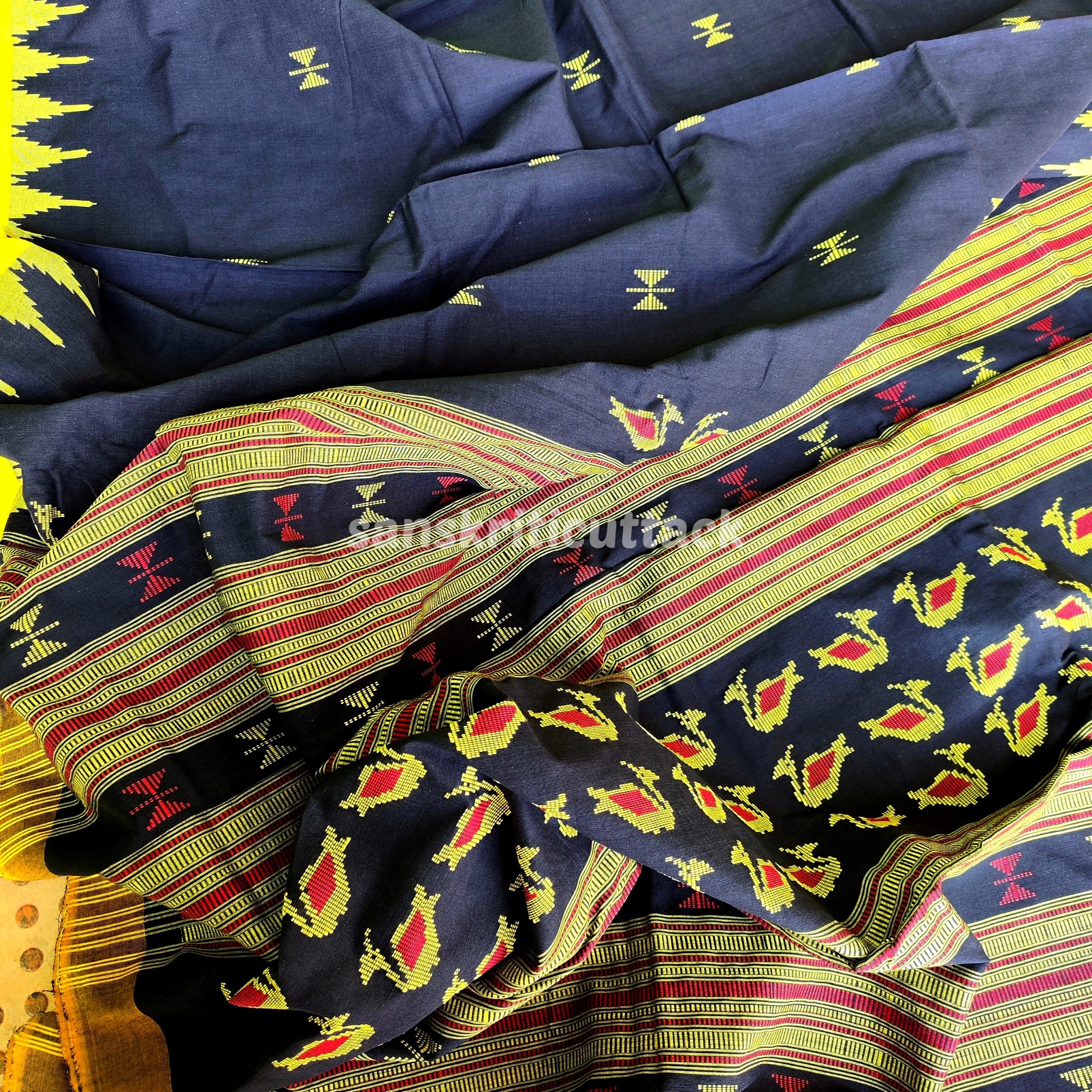 While we’ve introduced contemporary elements, we’ve ensured that the essence of Kotpad weaving remains intact. The Ducks in a Row design, like all our sarees, is meticulously handwoven using the traditional techniques passed down through generations.