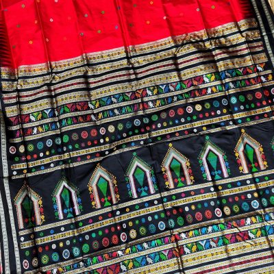Originating from Odisha, Dolabedi Silk Sarees have a charm that is hard to resist. The sarees are characterized by their extravagant pallus woven with extra weft, depicting the joyous Dola Utsav festival celebrated in the region. The motifs on these sarees, often in the form of triangles or domes, showcase the intricate craftsmanship of the weavers. The body of the saree features multicolored butas, further enhancing its visual appeal. The striking contrast between the vibrant pallu and the simpler body adds a touch of regal splendor to the overall look of the saree.