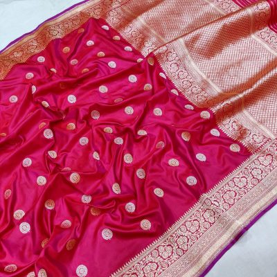 The art of creating Banarasi silk sarees has been perfected in the handloom workshops of Madanpura, Varanasi, where skilled artisans have preserved this magnificent craft for generations.Banarasi silk sarees are renowned for their vibrant hues, captivating silks, exquisite detailing, and timeless motifs that pay homage to tradition. They represent a timeless picture of history and carry the legacy of Indian culture. Crafted with meticulous care, these sarees feature mesmerizing zari work that adds a touch of opulence and elegance to the fabric. The motifs used in Banarasi silk sarees often draw inspiration from Indian mythology, historical events, and the beauty of nature. With floral patterns, paisley designs, and depictions of birds and animals, each Banarasi saree is a work of art that tells a unique story.