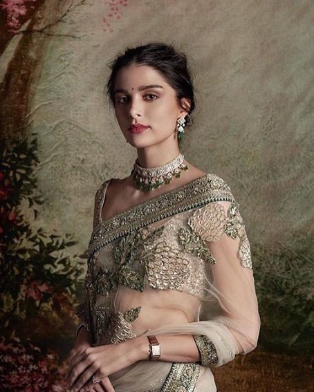 Julia Roberts adds her touch of Hollywood glamor to the traditional tan saree. Radiating confidence, she effortlessly proves that elegance knows no boundaries.