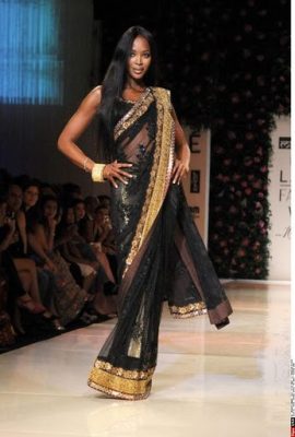 Naomi Campbell commands attention as she graces the occasion draped in a black saree. Her striking beauty and grace make her an unforgettable sight.