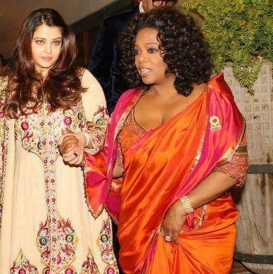 Oprah Winfrey, an icon of television, stuns the world with her choice of a vibrant orange saree. Her powerful aura shines brightly, leaving a lasting impression on all who behold her.