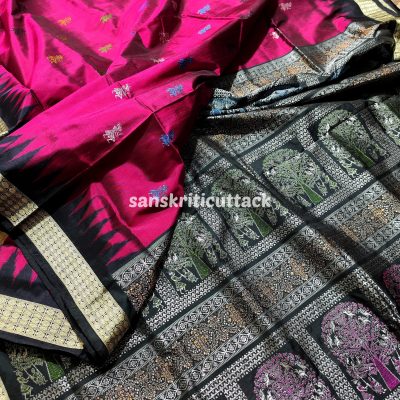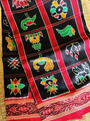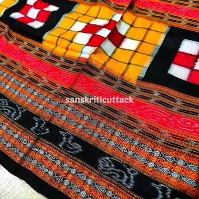 Bright colors and bold patterns define the Khandua saree, crafted from silk. These sarees feature motifs inspired by birds, animals, and flowers, adding a touch of natural beauty. With their vibrant hues and intricate designs, Khandua sarees are a visual delight that captures the essence of Odisha’s cultural heritage.