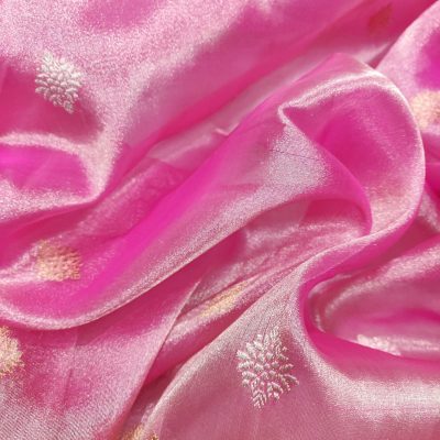 The fabric composition is where the primary distinction between organza sarees and tissue sarees can be found. Organza sarees are typically woven from silk, polyester, or nylon fibers, while tissue sarees combine silk with synthetic fibers like nylon or polyester. As a result, organza sarees have a more sheer and transparent appearance, whereas tissue sarees boast a lustrous sheen.