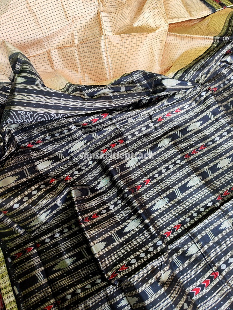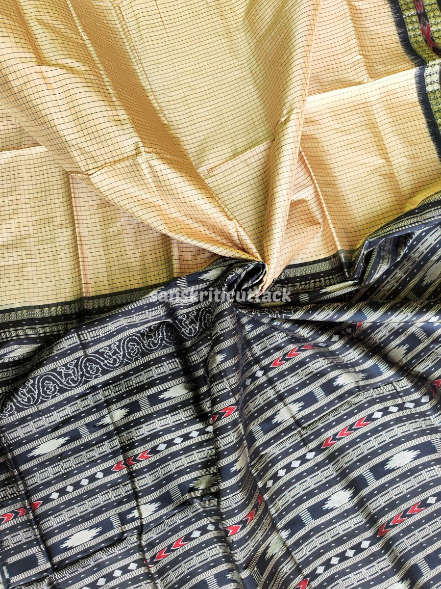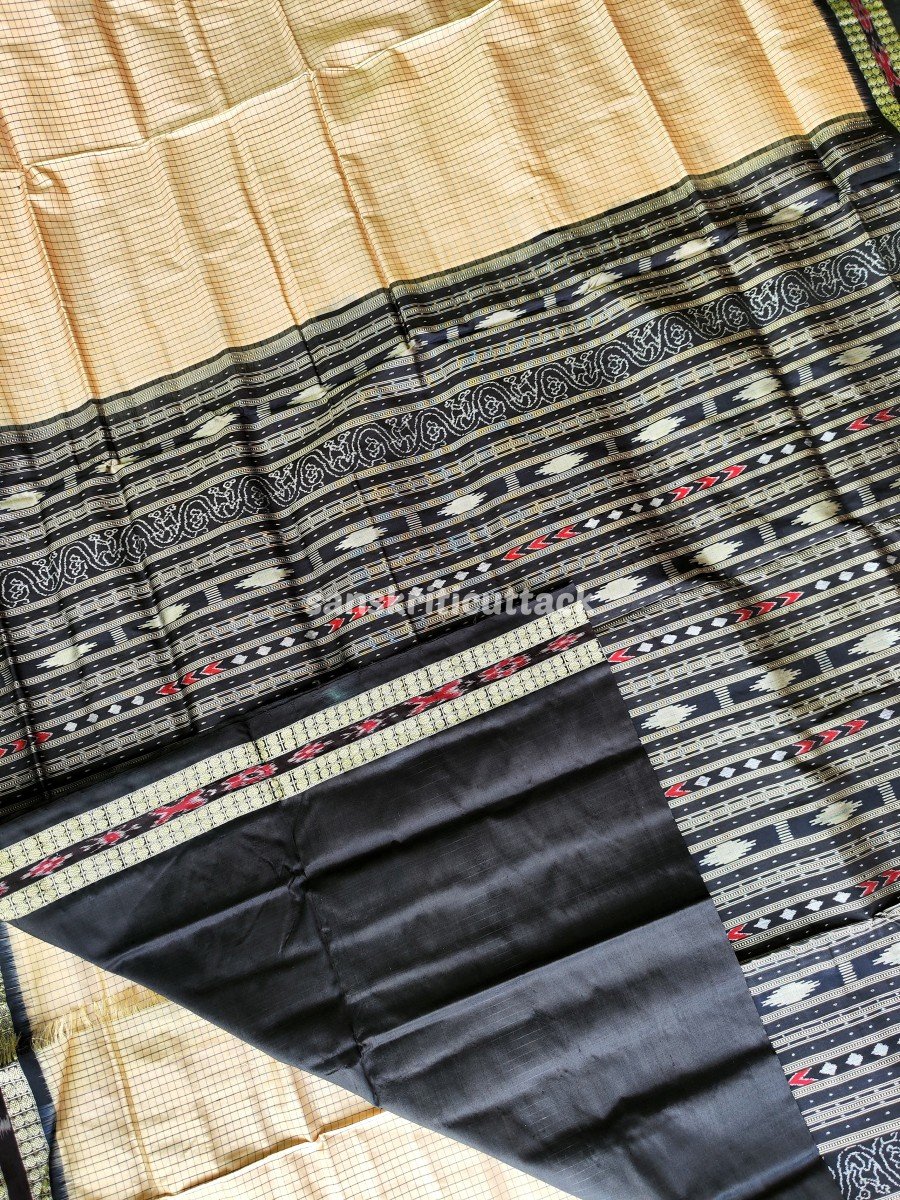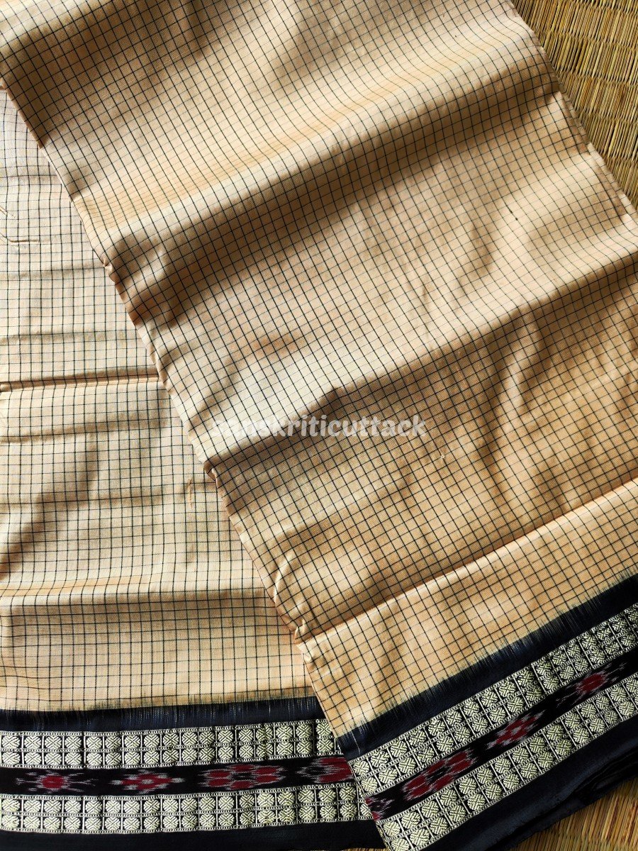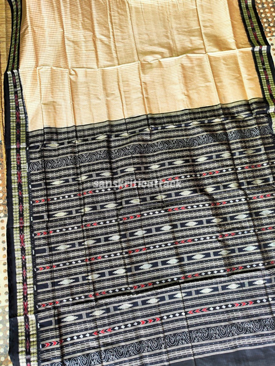 Beige Black Sachipar Sambalpuri Ikat Saree