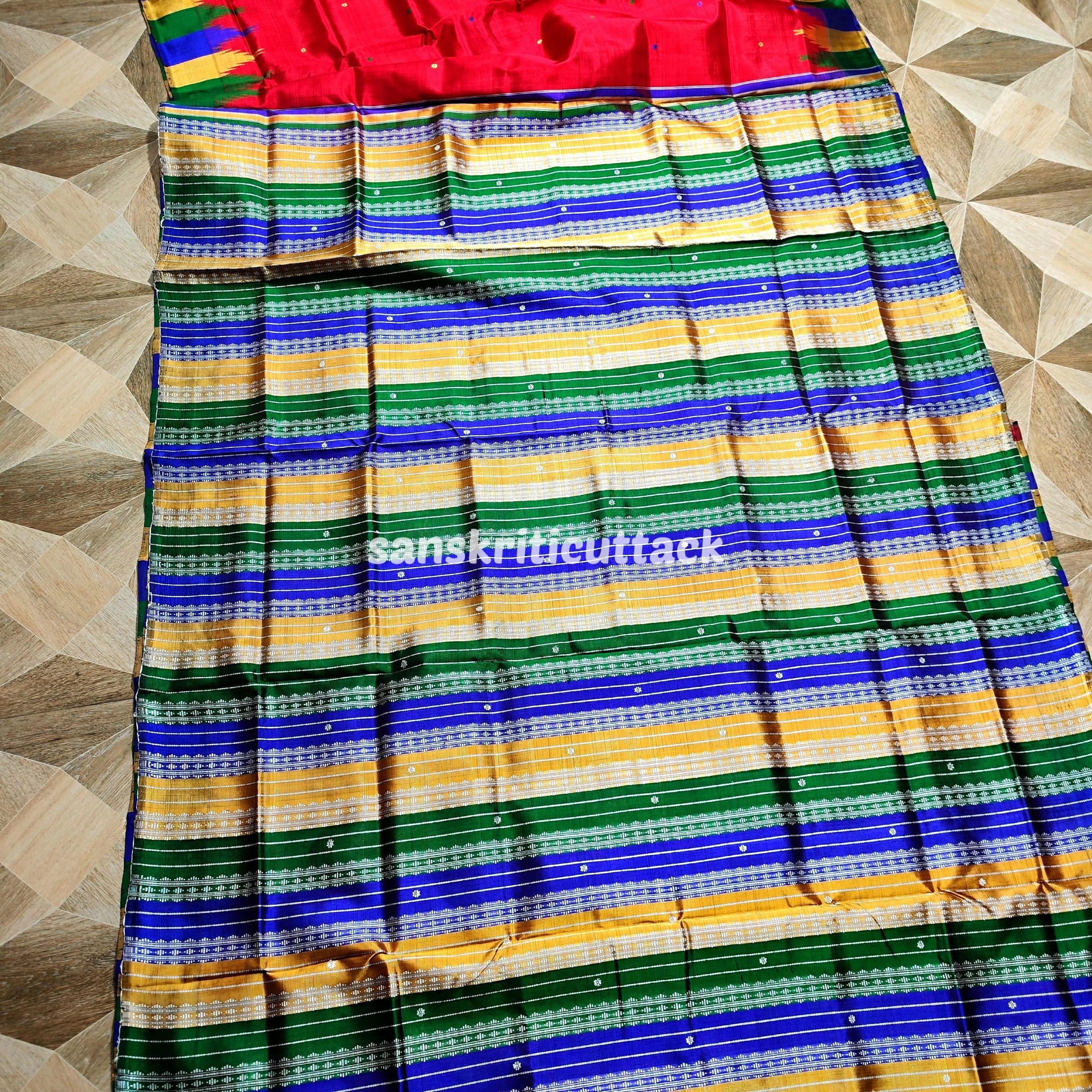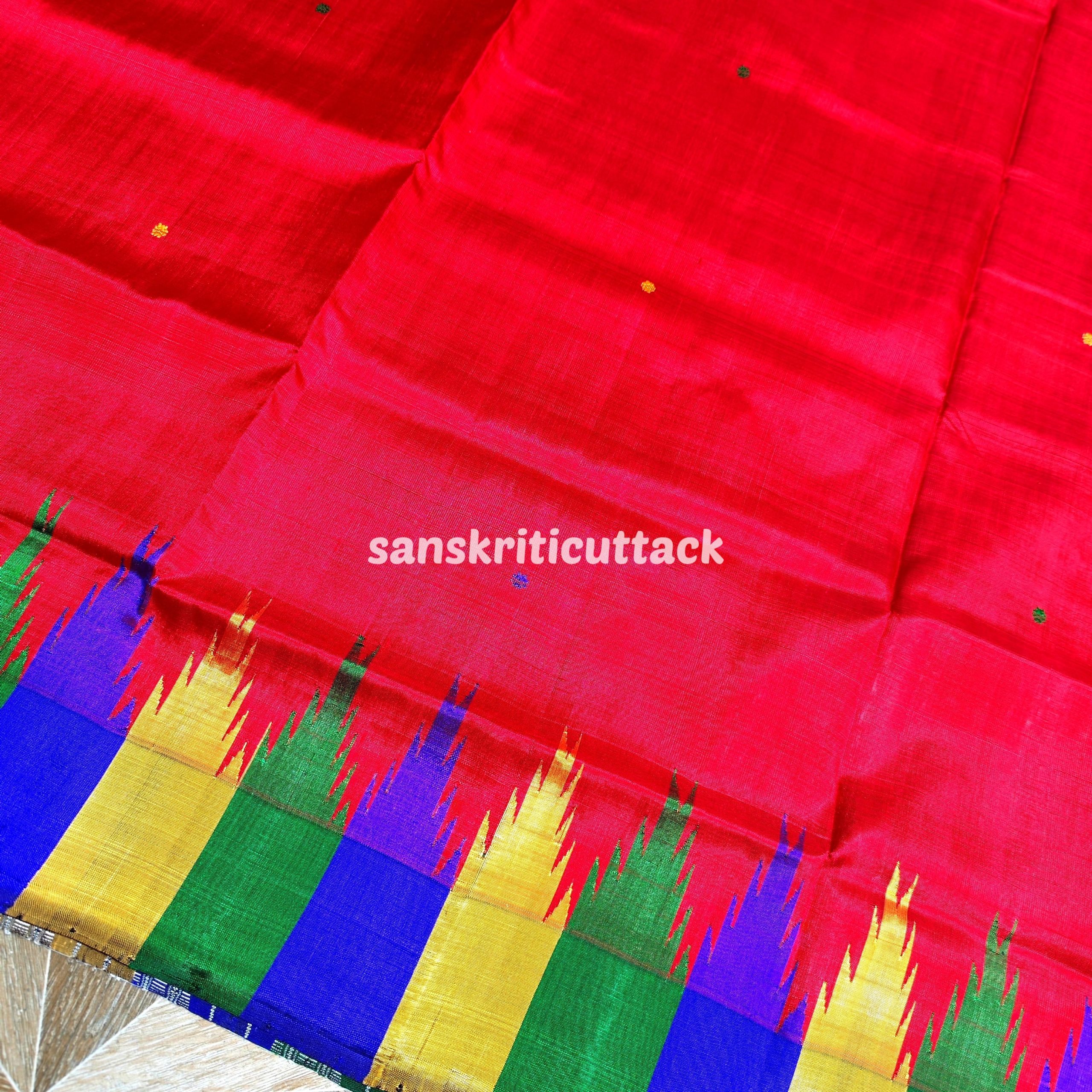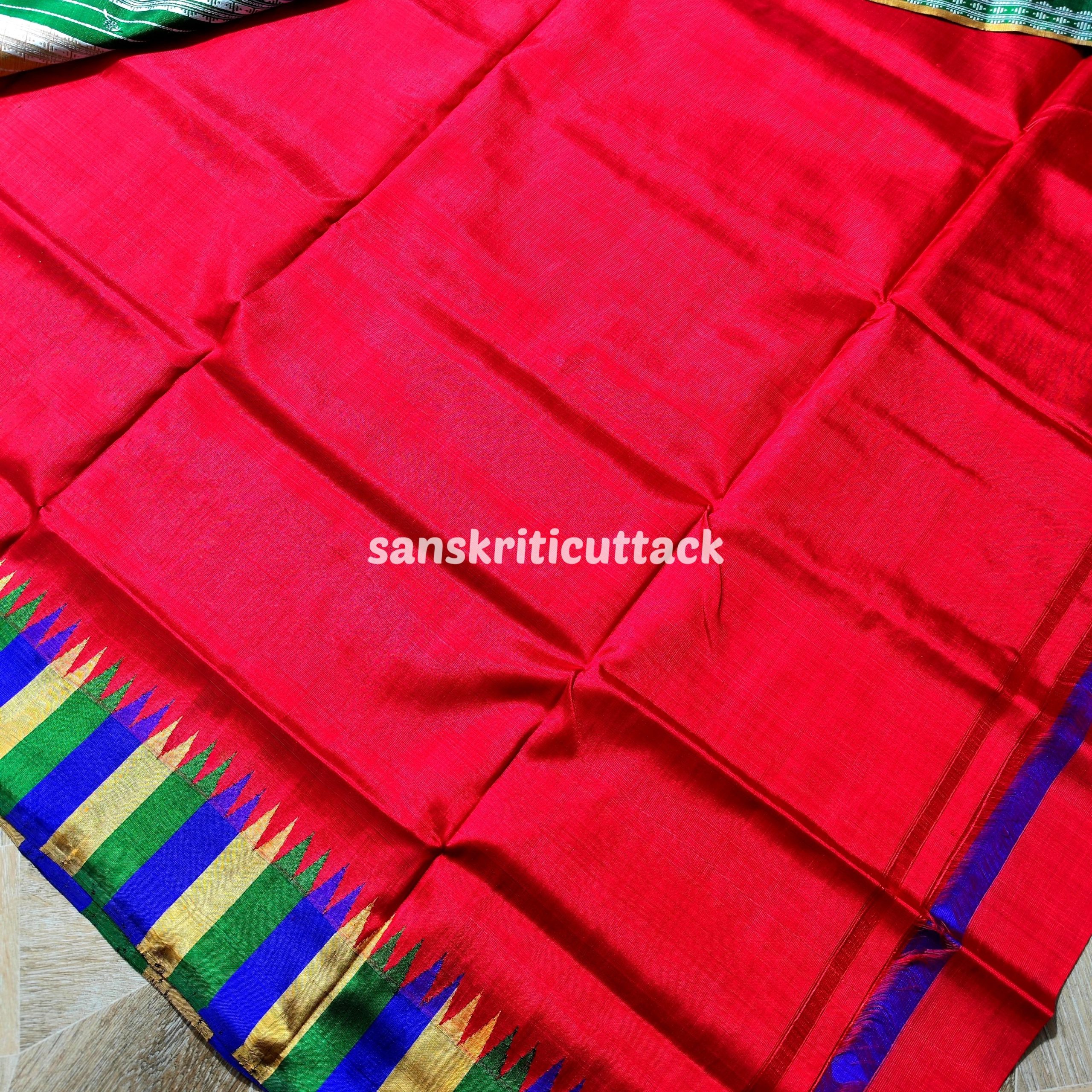 Product Description: Elevate your style with the timeless charm of our Berhampuri Double Pallu Red Silk Saree. Meticulously handwoven, this masterpiece showcases a rich red hue that exudes elegance. The intricate Phoda Kumbha Border adds a touch of tradition and artistry. Crafted with passion, this saree is a celebration of the Berhampuri weaving legacy.