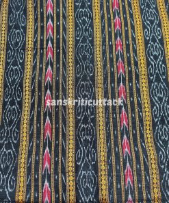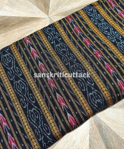 This exquisite black handloom cotton fabric is handwoven using the traditional Sambalpuri Ikat technique, which employs a resist dyeing process to create intricate patterns. The fabric features a classic Sambalpuri Ikat pattern in shades of black, making it perfect for both formal and casual wear. The pure cotton material makes it lightweight, breathable, and comfortable to wear in any weather. Ikat fabrics are world-famous for their extremely beautiful colors, texture, and designs, and this fabric is no exception. It’s perfect for creating clothing, home decor, and accessories. With its timeless design and high-quality construction, this Sambalpuri Ikat fabric is sure to add elegance and style to any project.This Black Handloom Cotton Sambalpuri Ikat Fabric is an elegant and sustainable textile made using a traditional Ikat weave. The fabric is made with soft and breathable cotton and features a beautiful Ikat pattern created using a resist dyeing technique with natural dyes. The unique Ikat design and rich black color make this fabric perfect for creating ethnic wear, formal wear, and other fashionable items. The fabric is lightweight and durable, ensuring that it will last for a long time. Our artisanal Ikat fabric is produced sustainably, using eco-friendly materials and techniques. Each piece is handmade with care and attention to detail, ensuring that you receive a high-quality fabric that celebrates India’s rich cultural heritage. Whether you’re looking for an elegant and sustainable addition to your wardrobe or textile collection, this Black Handloom Cotton Sambalpuri Ikat Fabric is a perfect choice. Its unique Ikat design and soft cotton texture make it a versatile fabric that can be used for clothing, home decor, and other textile creations.