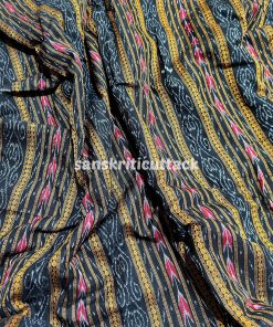 This exquisite black handloom cotton fabric is handwoven using the traditional Sambalpuri Ikat technique, which employs a resist dyeing process to create intricate patterns. The fabric features a classic Sambalpuri Ikat pattern in shades of black, making it perfect for both formal and casual wear. The pure cotton material makes it lightweight, breathable, and comfortable to wear in any weather. Ikat fabrics are world-famous for their extremely beautiful colors, texture, and designs, and this fabric is no exception. It’s perfect for creating clothing, home decor, and accessories. With its timeless design and high-quality construction, this Sambalpuri Ikat fabric is sure to add elegance and style to any project.This Black Handloom Cotton Sambalpuri Ikat Fabric is an elegant and sustainable textile made using a traditional Ikat weave. The fabric is made with soft and breathable cotton and features a beautiful Ikat pattern created using a resist dyeing technique with natural dyes. The unique Ikat design and rich black color make this fabric perfect for creating ethnic wear, formal wear, and other fashionable items. The fabric is lightweight and durable, ensuring that it will last for a long time. Our artisanal Ikat fabric is produced sustainably, using eco-friendly materials and techniques. Each piece is handmade with care and attention to detail, ensuring that you receive a high-quality fabric that celebrates India’s rich cultural heritage. Whether you’re looking for an elegant and sustainable addition to your wardrobe or textile collection, this Black Handloom Cotton Sambalpuri Ikat Fabric is a perfect choice. Its unique Ikat design and soft cotton texture make it a versatile fabric that can be used for clothing, home decor, and other textile creations.