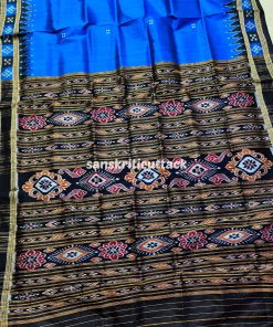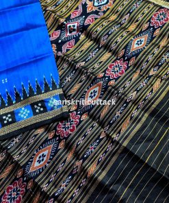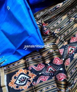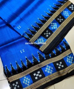 Unveil sophistication with our Blue Black Border Pasapalli Khandua Silk Saree, meticulously crafted for timeless elegance. The interplay of vibrant hues and intricate pasapalli motifs weaves a story of tradition and modernity. Luxuriously soft silk drapes gracefully, ensuring comfort with style.