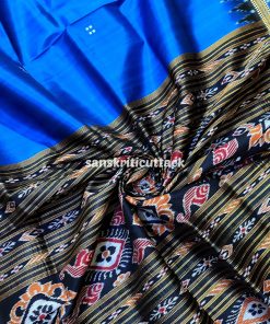 Unveil sophistication with our Blue Black Border Pasapalli Khandua Silk Saree, meticulously crafted for timeless elegance. The interplay of vibrant hues and intricate pasapalli motifs weaves a story of tradition and modernity. Luxuriously soft silk drapes gracefully, ensuring comfort with style.