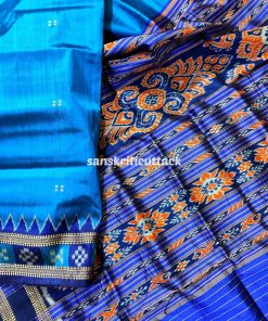 Indulge in timeless elegance with our Blue Border Pasapalli Khandua Silk Saree. Handcrafted with intricate details, this saree features delicate butis scattered over a body of serene blue, complemented by a captivating blue Kumbha border. The Pasapalli design, boasting two shades of blue, adds a touch of sophistication to this masterpiece. Perfect for any occasion, this saree exudes grace and tradition effortlessly. Elevate your style with this artisanal creation.