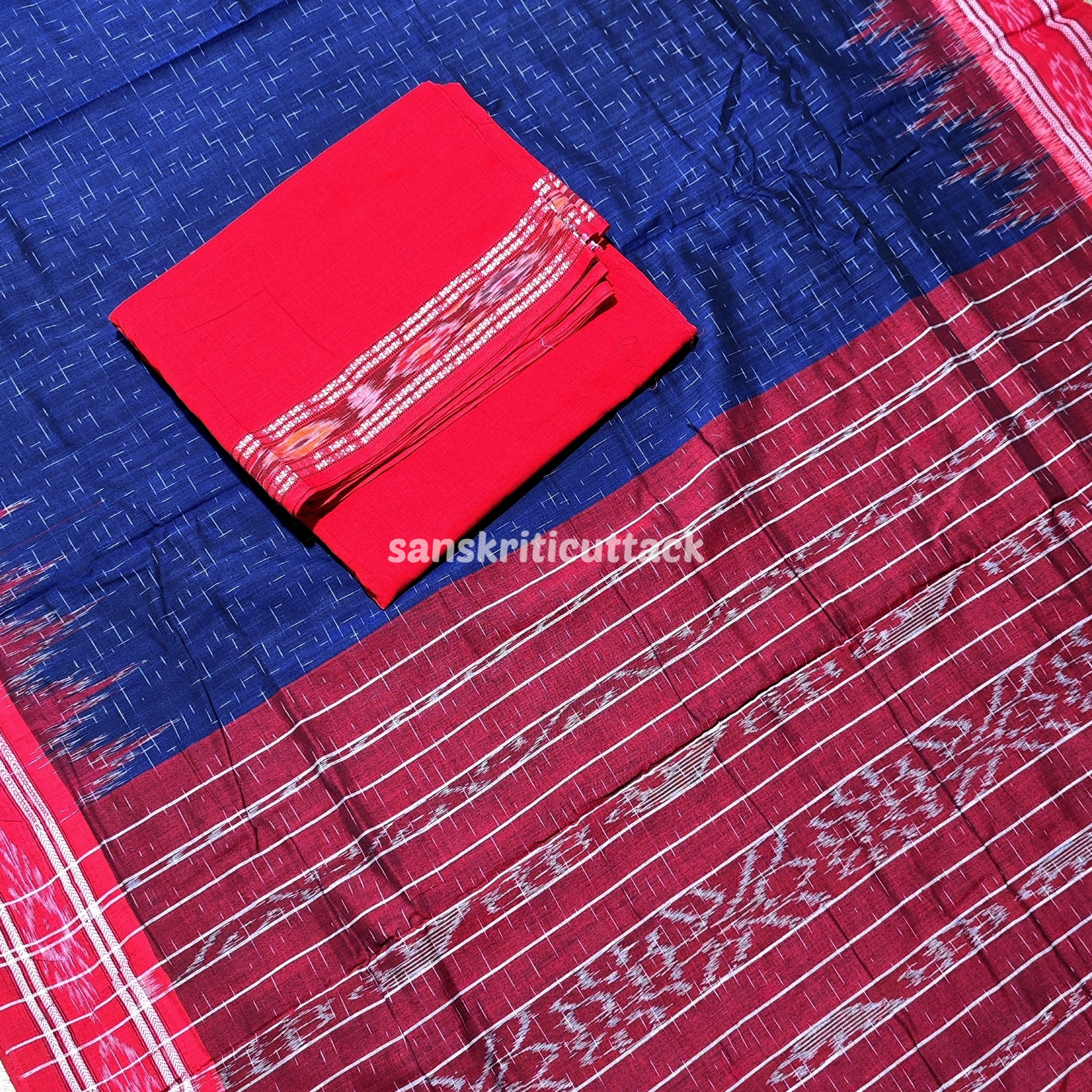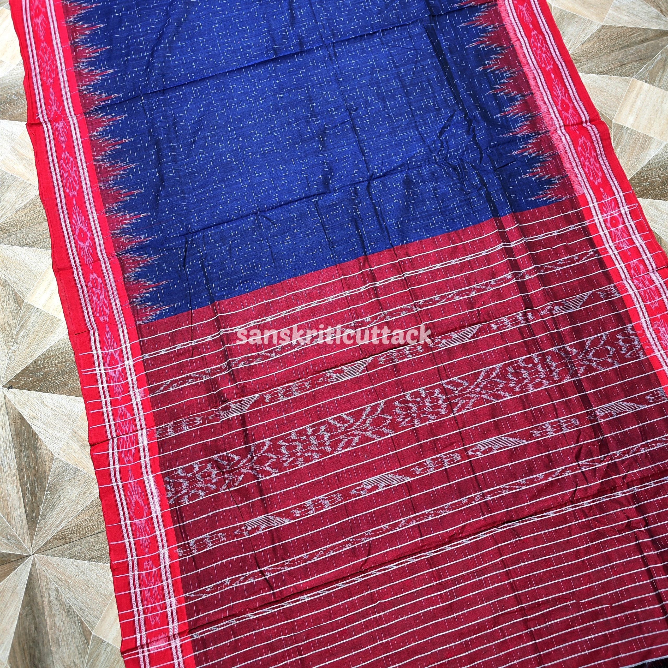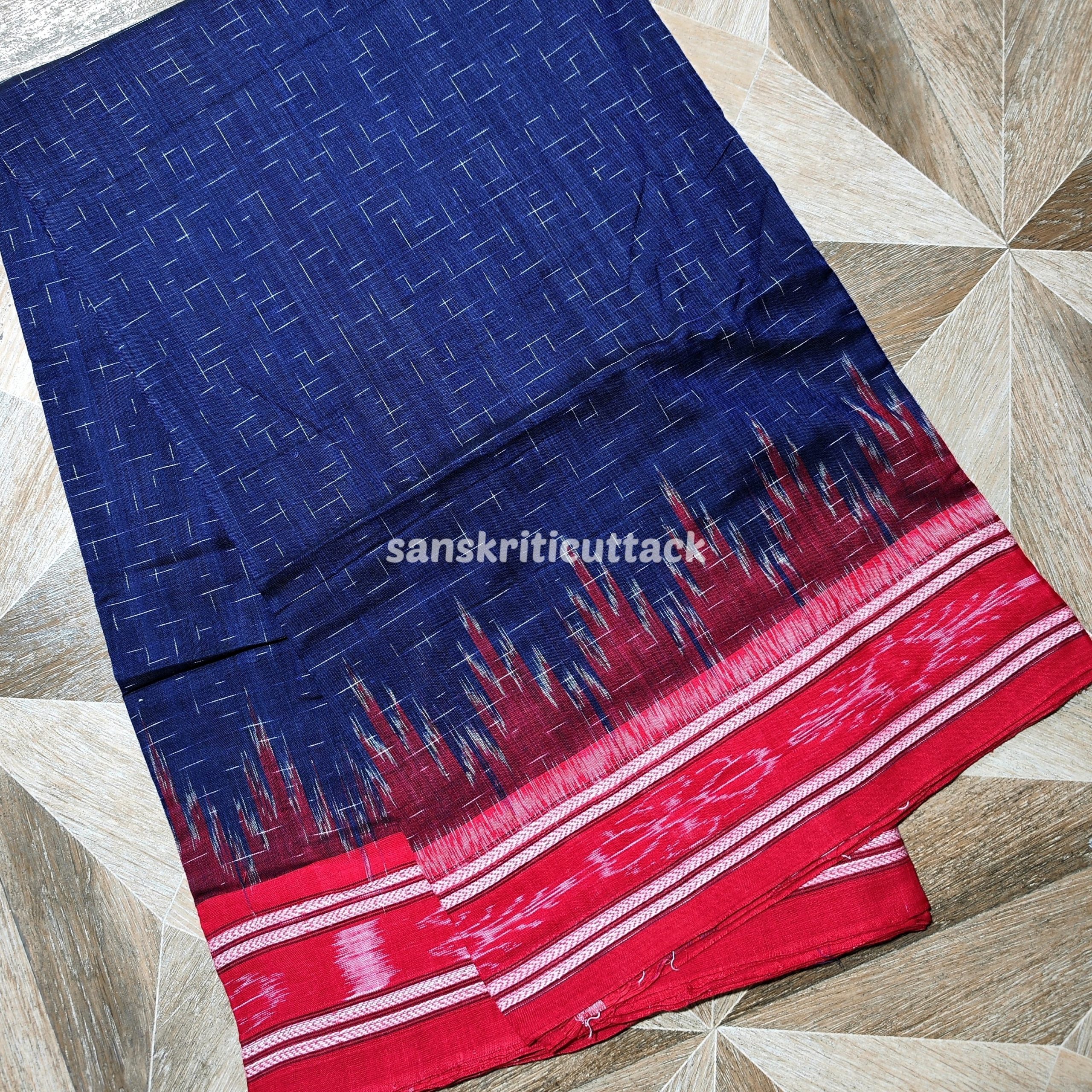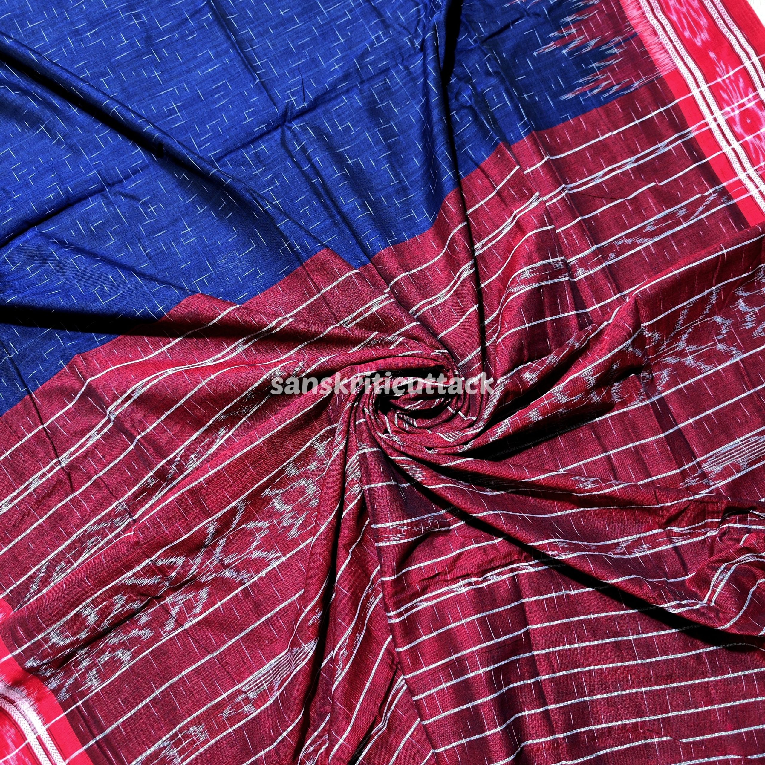 Discover the perfect blend of tradition and elegance with our Blue Red Jharna Handloom Ikkat Cotton Khandua Saree. Handcrafted by skilled artisans, this exquisite saree features intricate ikkat patterns, showcasing the artistic heritage of Odisha. The soft, breathable cotton fabric ensures all-day comfort, making it ideal for any occasion, whether formal or festive.