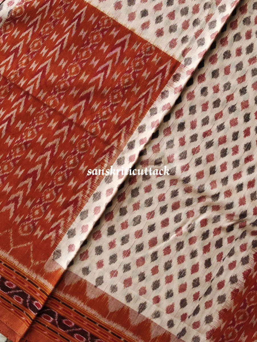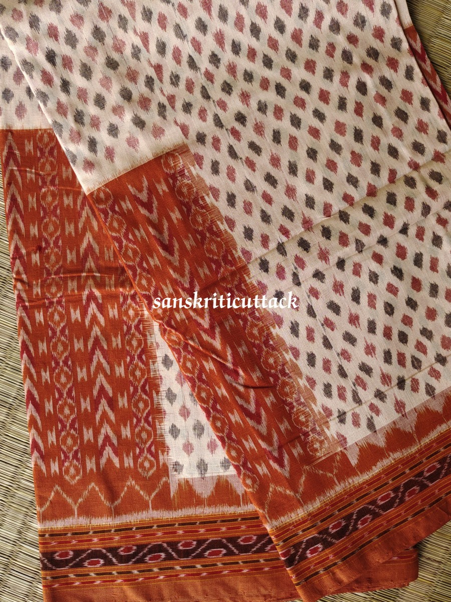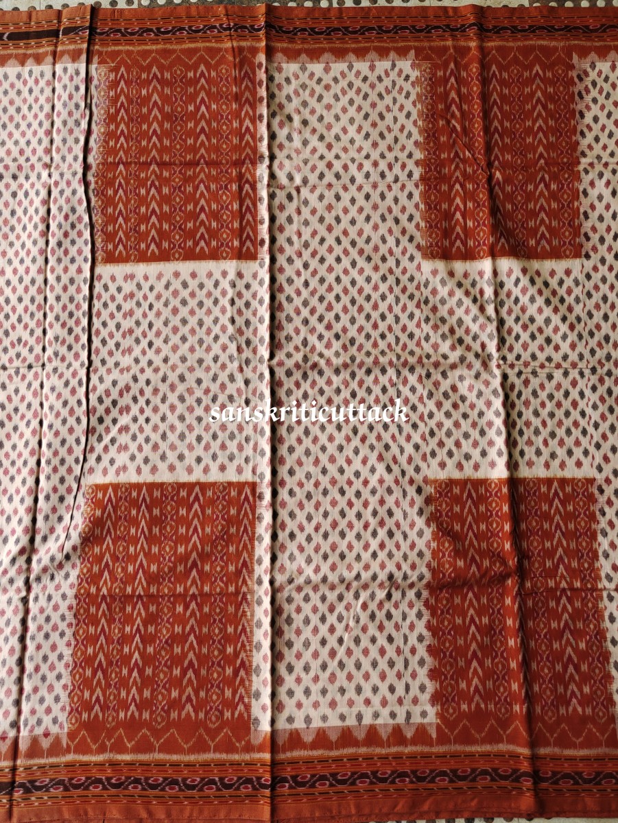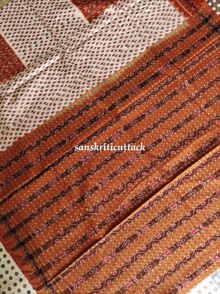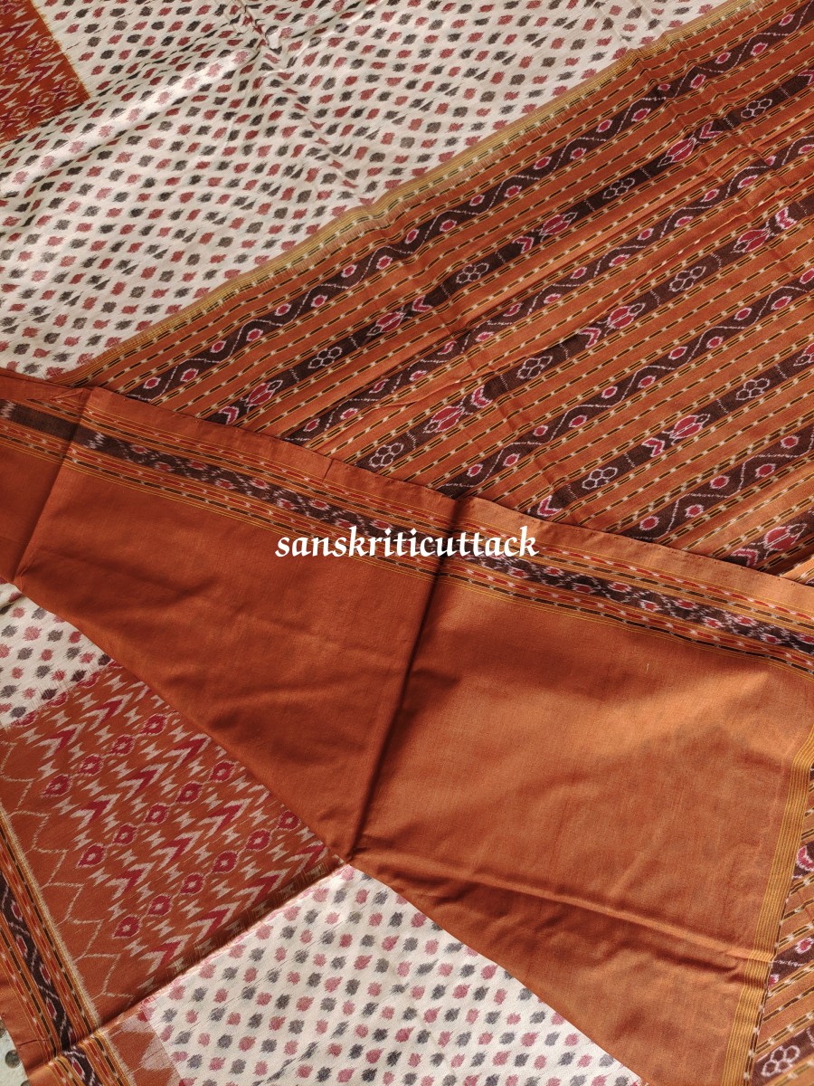 Introducing our beautiful Brown Ikat Handwoven Sambalpuri Cotton Saree, a stunning piece of traditional Indian craftsmanship and modern style. This saree is perfect for any occasion, from a casual day out to a formal event. Our saree is handwoven by skilled artisans, making each piece unique in its design and color. The Ikat design of our saree is created through a unique dyeing technique that gives it a beautiful, brown and cream look. The intricate detailing of the Ikat design adds an extra touch of elegance and sophistication. Our saree is made of high-quality, soft cotton fabric that is lightweight and breathable, making it perfect for all-day wear. The fabric drapes beautifully, allowing for a flattering and comfortable fit for all body types. The cotton material also makes it easy to care for, ensuring that your saree stays in pristine condition for years to come. Whether you’re dressing up for a wedding or simply running errands, our Brown Ikat Handwoven Sambalpuri Cotton Saree is versatile enough for any occasion. The brown and cream Ikat design is perfect for adding a touch of elegance to your outfit, while the soft and comfortable fabric ensures that you’ll look and feel your best. This stunning saree features a beautiful blend of traditional design and modern style. The intricate Ikat pattern is handwoven by skilled artisans, ensuring that each piece is unique. The soft and breathable cotton fabric makes it comfortable to wear all day long, making it perfect for any occasion. The saree comes with a matching blouse piece that can be tailored to your liking. If you’re looking for a unique and stylish saree that is perfect for any occasion, then our Brown Ikat Handwoven Sambalpuri Cotton Saree is just what you need. The intricate Ikat pattern and contemporary design make this saree a must-have for any fashion-forward woman. Made from premium quality Sambalpuri cotton, this saree is not only comfortable but also durable. And the best part? It’s affordable, so you don’t have to break the bank to add this exquisite piece to your wardrobe. So, add this saree to your collection today and elevate your wardrobe to the next level.