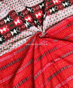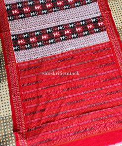 Explore the exquisite craftsmanship of our Classic Off White Maroon Black Handloom Ikat Sambalpuri Cotton Saree. This masterpiece, skillfully woven by artisans from Sambalpur, Odisha, showcases the intricate Ikat weaving technique, resulting in captivating one-of-a-kind patterns. The soft, lightweight Sambalpuri cotton fabric ensures comfort for all-day wear. The elegant off-white, maroon, and black color combination adds versatility to your wardrobe, suitable for various occasions. This saree includes a matching blouse piece, enhancing its appeal.