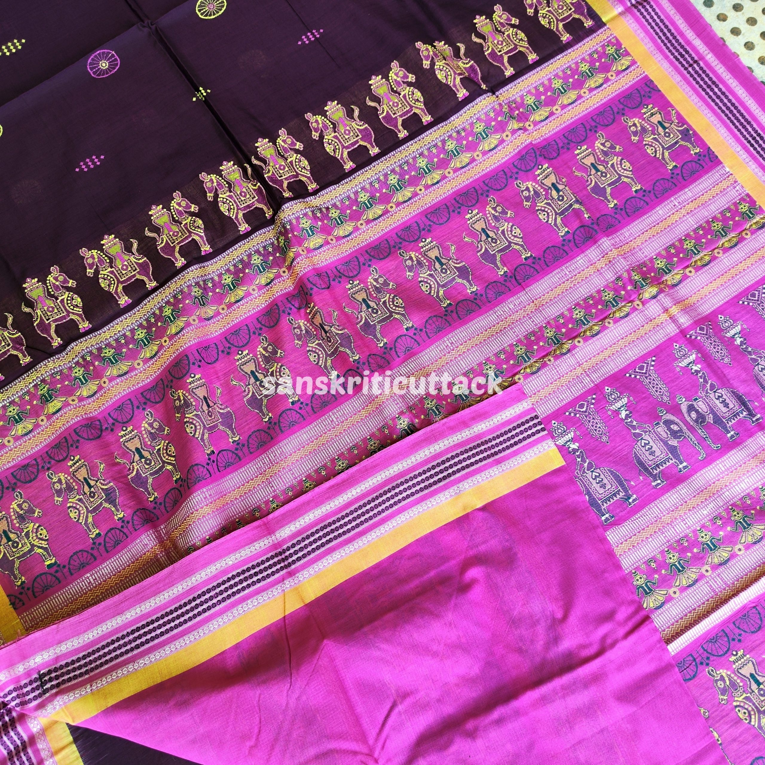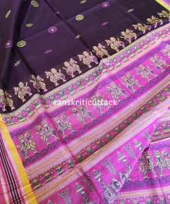 Dark Purple Saree, Bomkai Cotton, Lavender Pallu, Elephant Horse Motifs, Extra Weft Technique, Traditional Craftsmanship, Ethnic Fashion, Indian Attire, Unique Design, Handwoven Saree, bomkai, bomkai saree, bomkai silk saree, bomkai pata saree, bomkai cotton saree, bomkai silk, bomkai silk saree price, boyanika bomkai silk saree, bomkai saree price, bomkai pata, sambalpuri bomkai pata saree, bomkai pata saree with price, bomkai patta saree, sambalpuri bomkai silk saree price, bomkai silk saree images, bomkai pata saree price, sambalpuri bomkai saree,