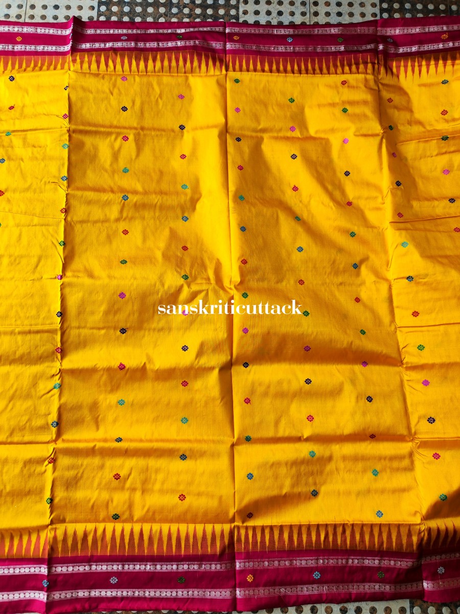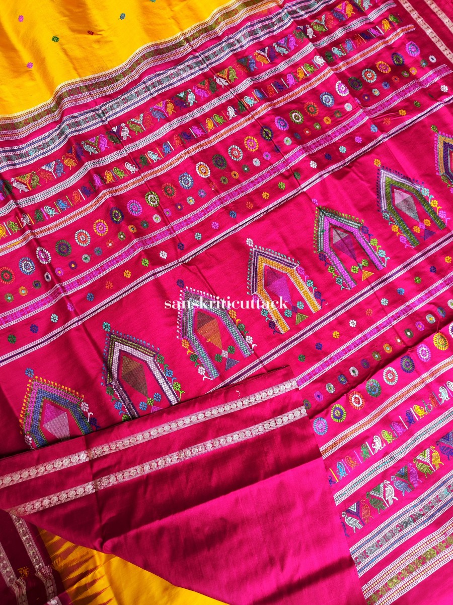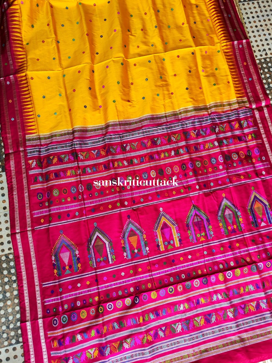 Complete with a matching magenta blouse, this Dolabedi Yellow Magenta Handwoven Silk Saree is a true testament to the craftsmanship and artistry of Odisha weaves. Explore our collection now and embrace the elegance and sophistication that this exquisite saree brings to your wardrobe.