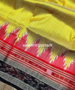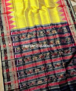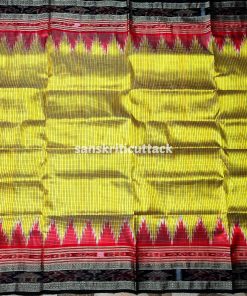 Embrace timeless allure with the Dual Tone Yellow Sachipar Khandua Pata Saree. Meticulously crafted, it radiates grace and sophistication. The vibrant dual-tone yellow shade adds vibrancy to your ensemble. The intricate Sachipar weave reflects a rich cultural heritage, a true masterpiece. Handwoven by skilled artisans, this saree exudes sheer opulence, ideal for special occasions. Elevate your style quotient and embrace ethereal beauty.
