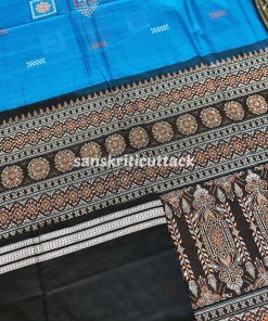 Elevate your style with our exquisite Sky Blue Handwoven Cotton Bomkai Saree. The intricate black Dobby Rudraksh border adds a touch of mystique, while the black exquisite pallu exudes sophistication. Crafted with care, this saree drapes gracefully, making you the center of attention. Complete your look with the included black blouse for a perfect ensemble. Handcrafted to perfection, this saree showcases the rich heritage of Indian weaving. Whether it’s a formal event or a casual gathering, this saree blends tradition with modernity seamlessly. Make a statement with this unique piece that captures the essence of Indian craftsmanship.