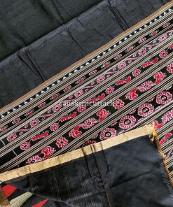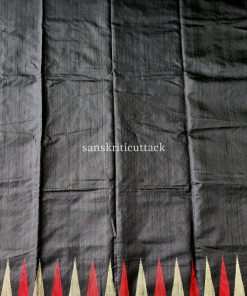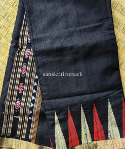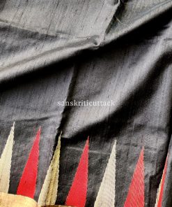 The Gopalpur Tussar Saree boasts a sumptuous black base, elegantly complemented by delicate silver zari craftsmanship. Its stunning contrast adds a dash of glamour, making it perfect for any occasion. Immerse yourself in the fusion of classic Odisha Handloom design and modern flair.