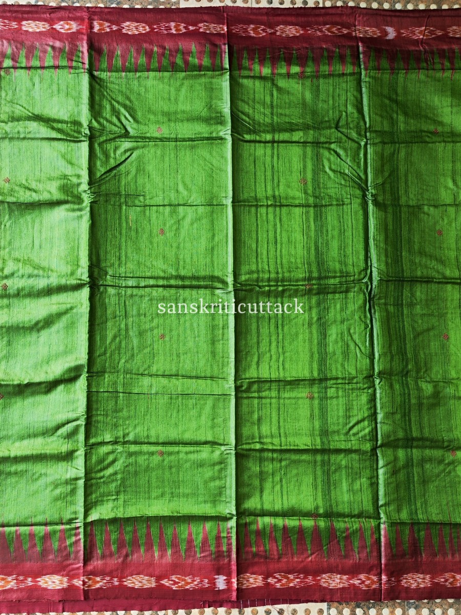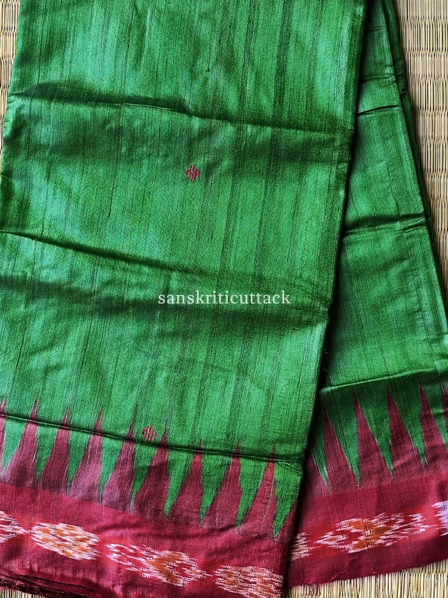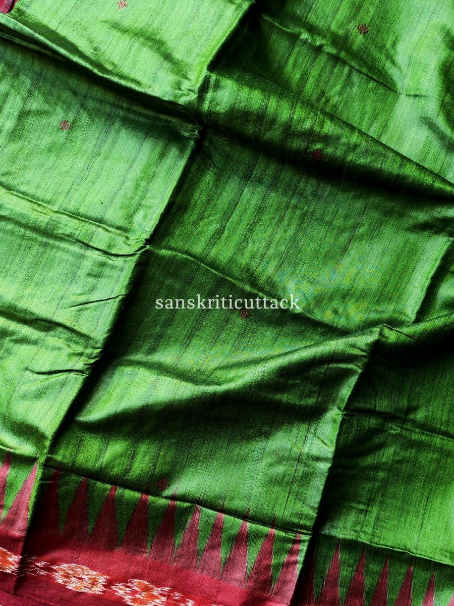 Experience timeless elegance with our Green Maroon Handspun Gopalpur Tussar Silk Saree. Crafted meticulously, this saree showcases the rich heritage of Indian handloom artistry. The interplay of green and maroon hues exudes sophistication, making it perfect for special occasions. The tussar silk fabric offers a luxurious drape, and the handspun texture adds a unique touch. Whether you’re attending a wedding or a festive celebration, this saree is a statement of style and tradition. Elevate your wardrobe with this masterpiece that celebrates the beauty of Indian craftsmanship.
