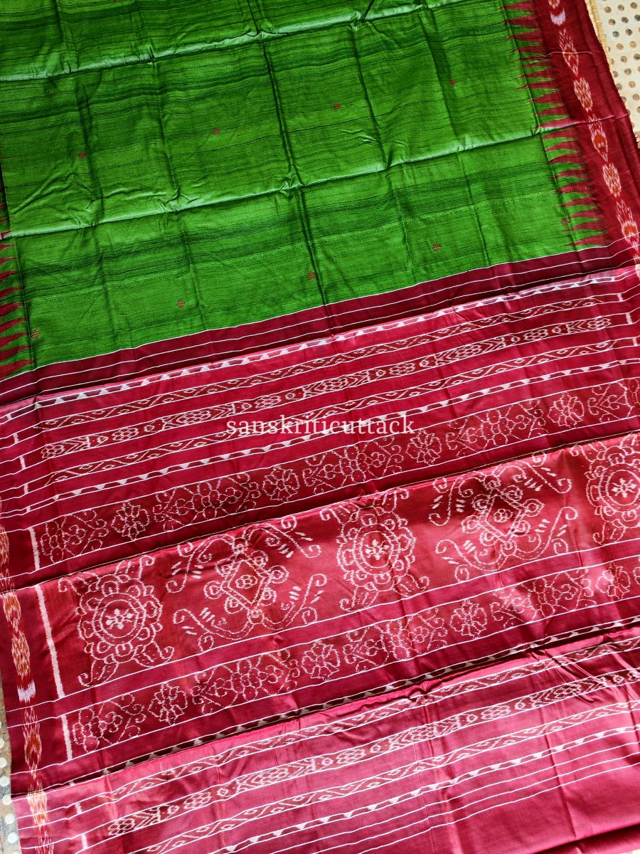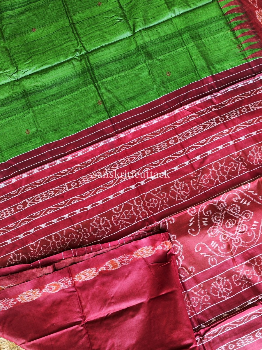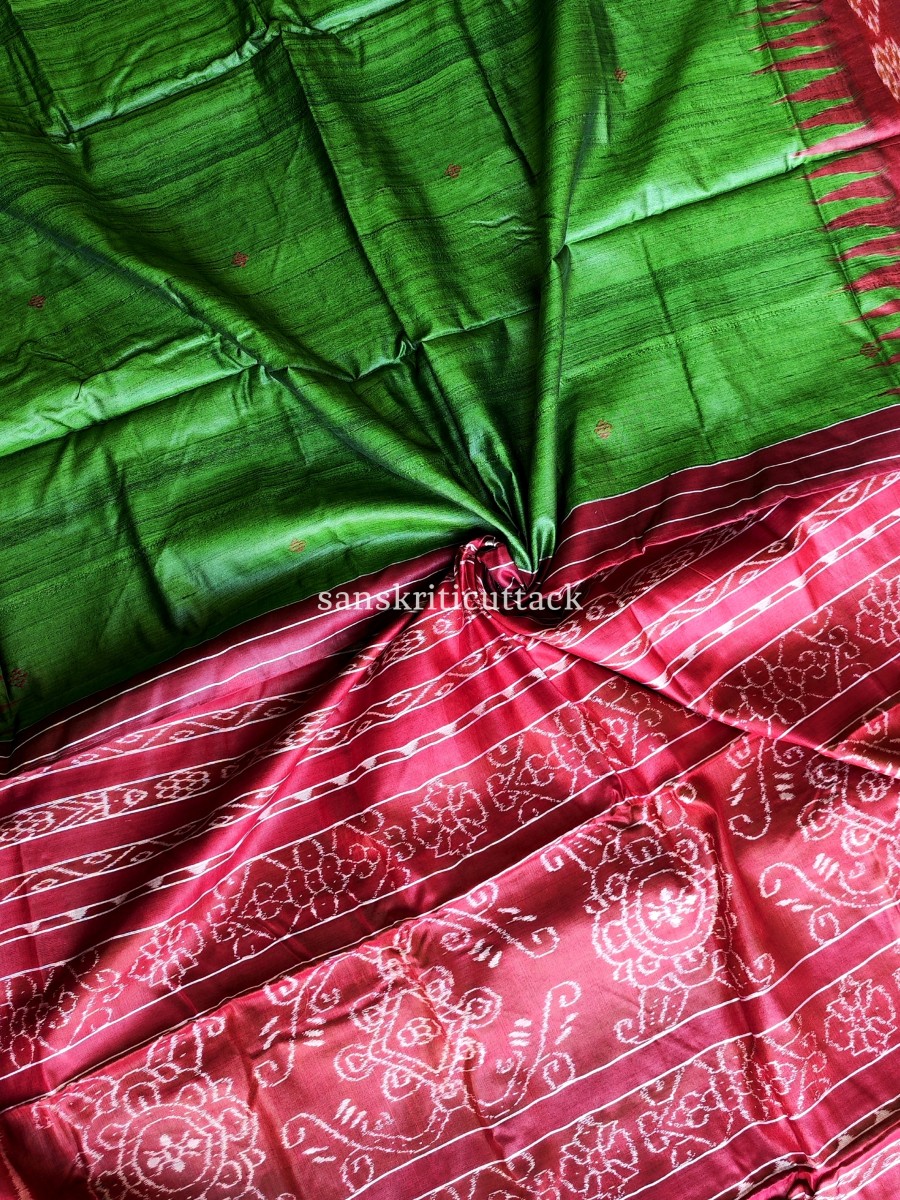 Experience timeless elegance with our Green Maroon Handspun Gopalpur Tussar Silk Saree. Crafted meticulously, this saree showcases the rich heritage of Indian handloom artistry. The interplay of green and maroon hues exudes sophistication, making it perfect for special occasions. The tussar silk fabric offers a luxurious drape, and the handspun texture adds a unique touch. Whether you’re attending a wedding or a festive celebration, this saree is a statement of style and tradition. Elevate your wardrobe with this masterpiece that celebrates the beauty of Indian craftsmanship.