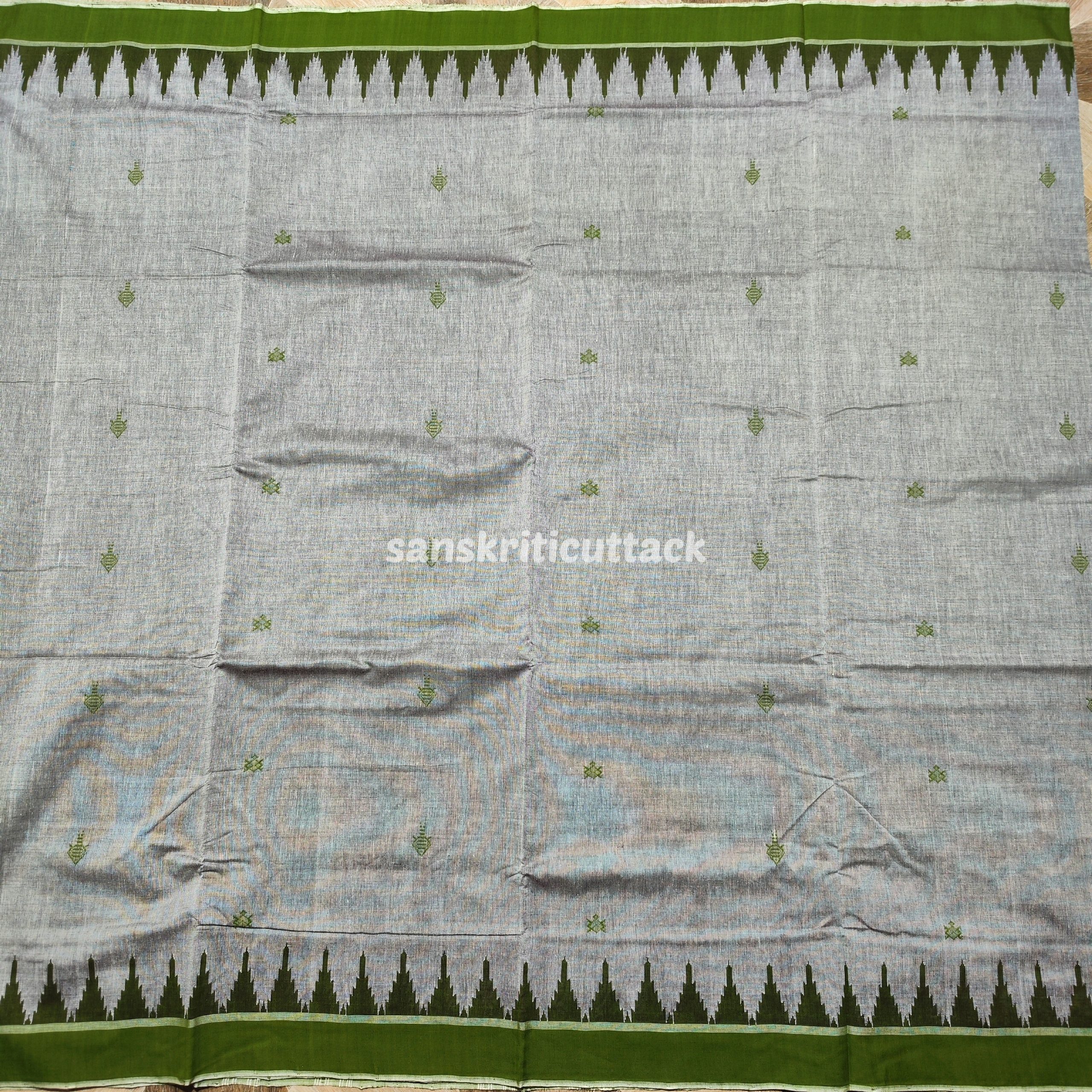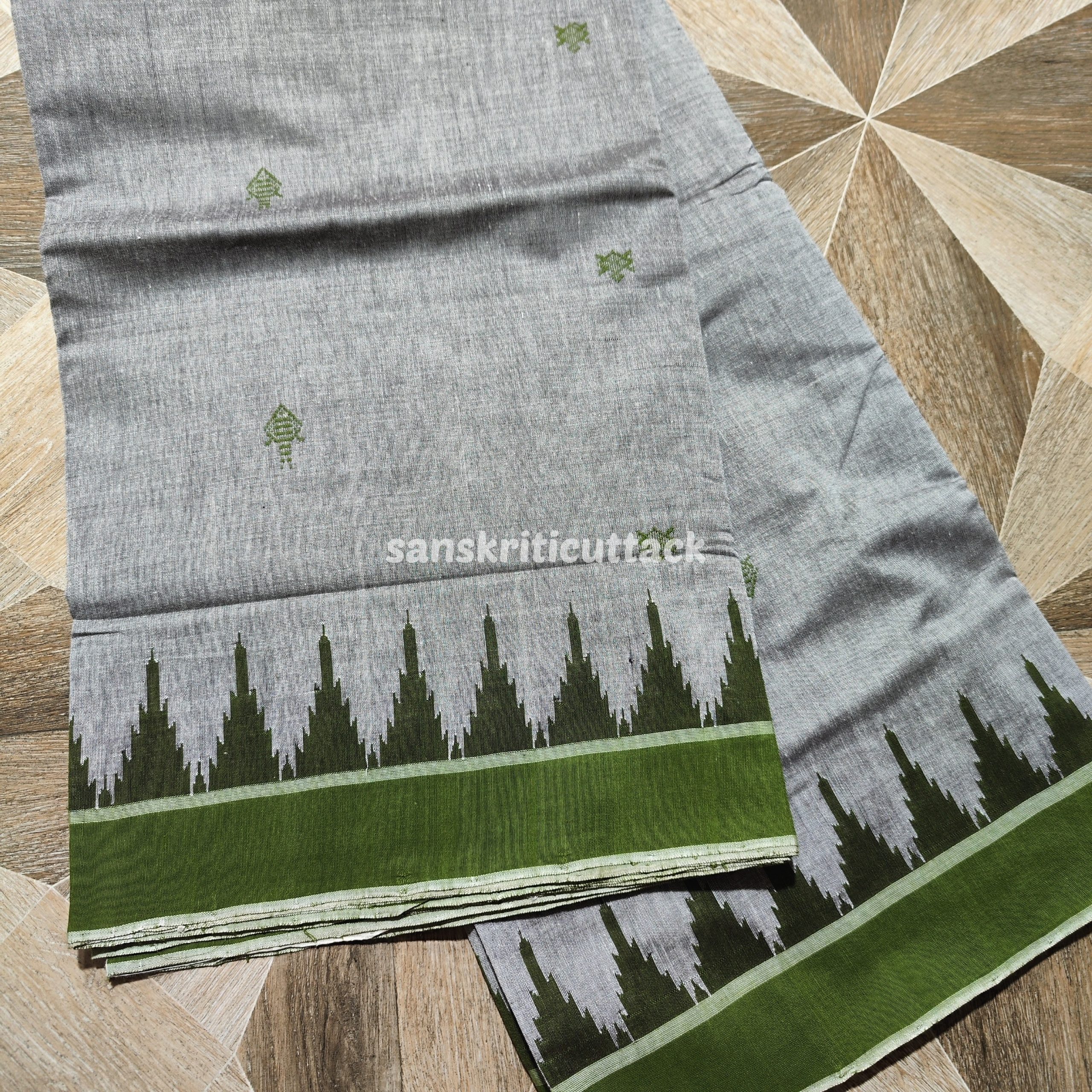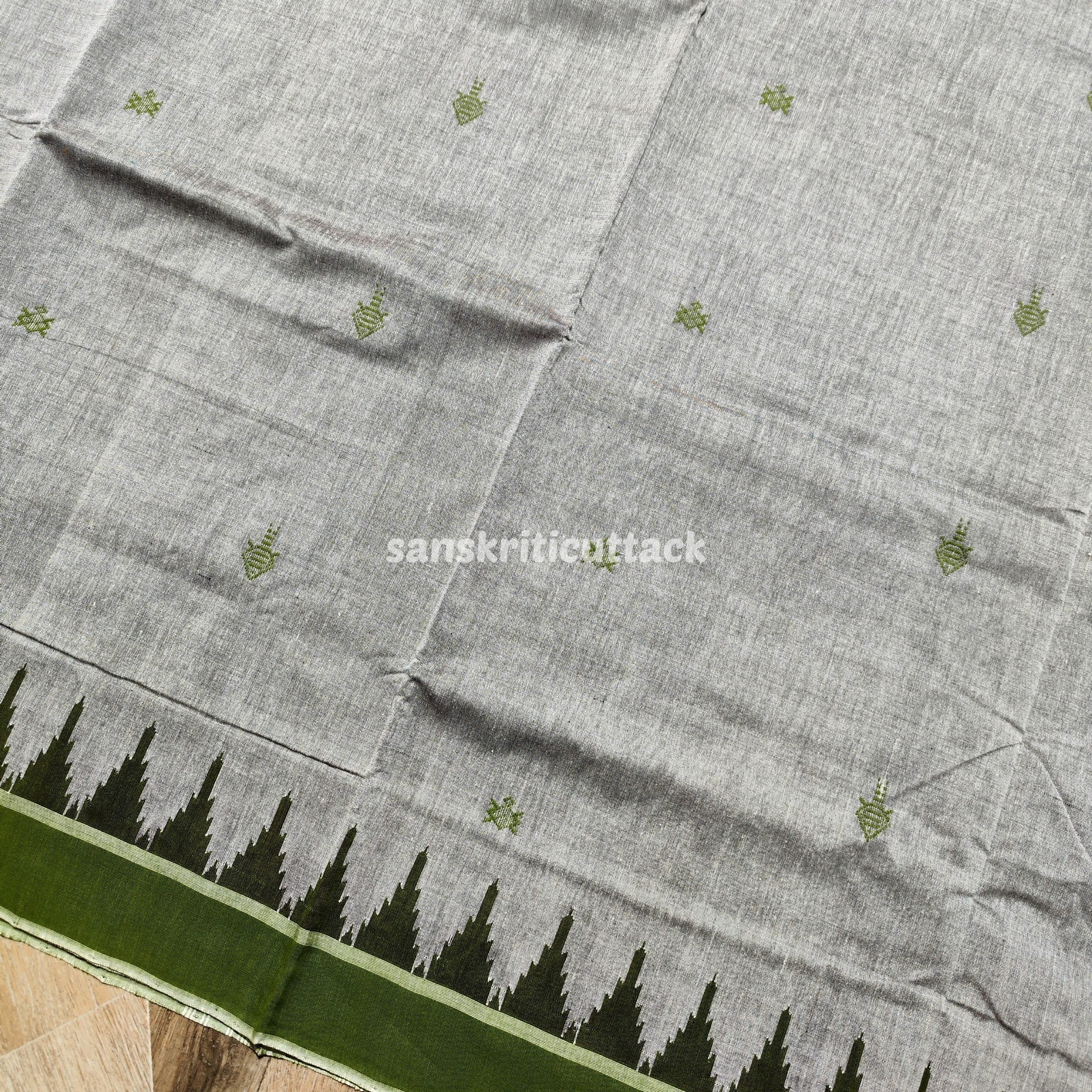 Colour: Grey body with heena green phoda kumbha border & pallu