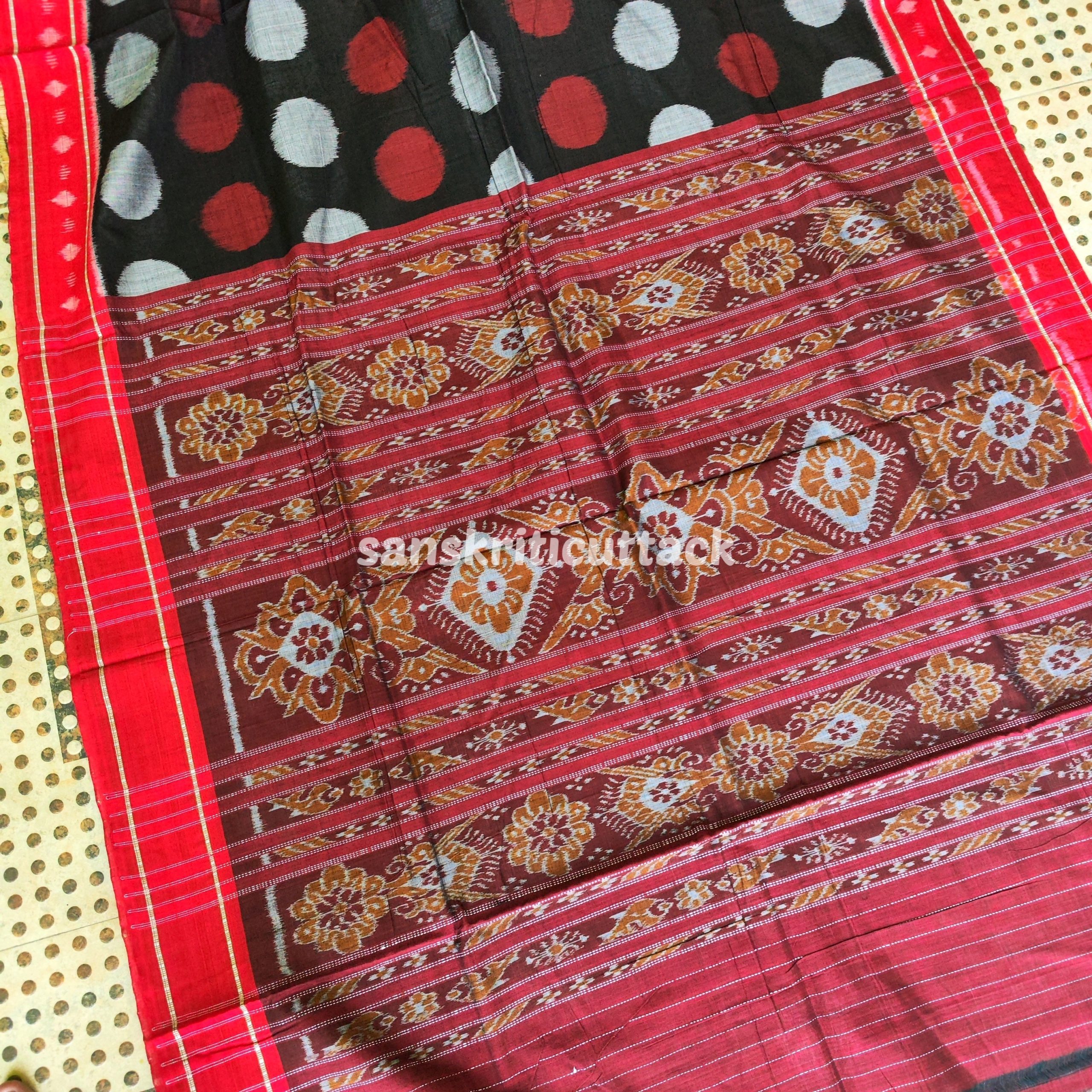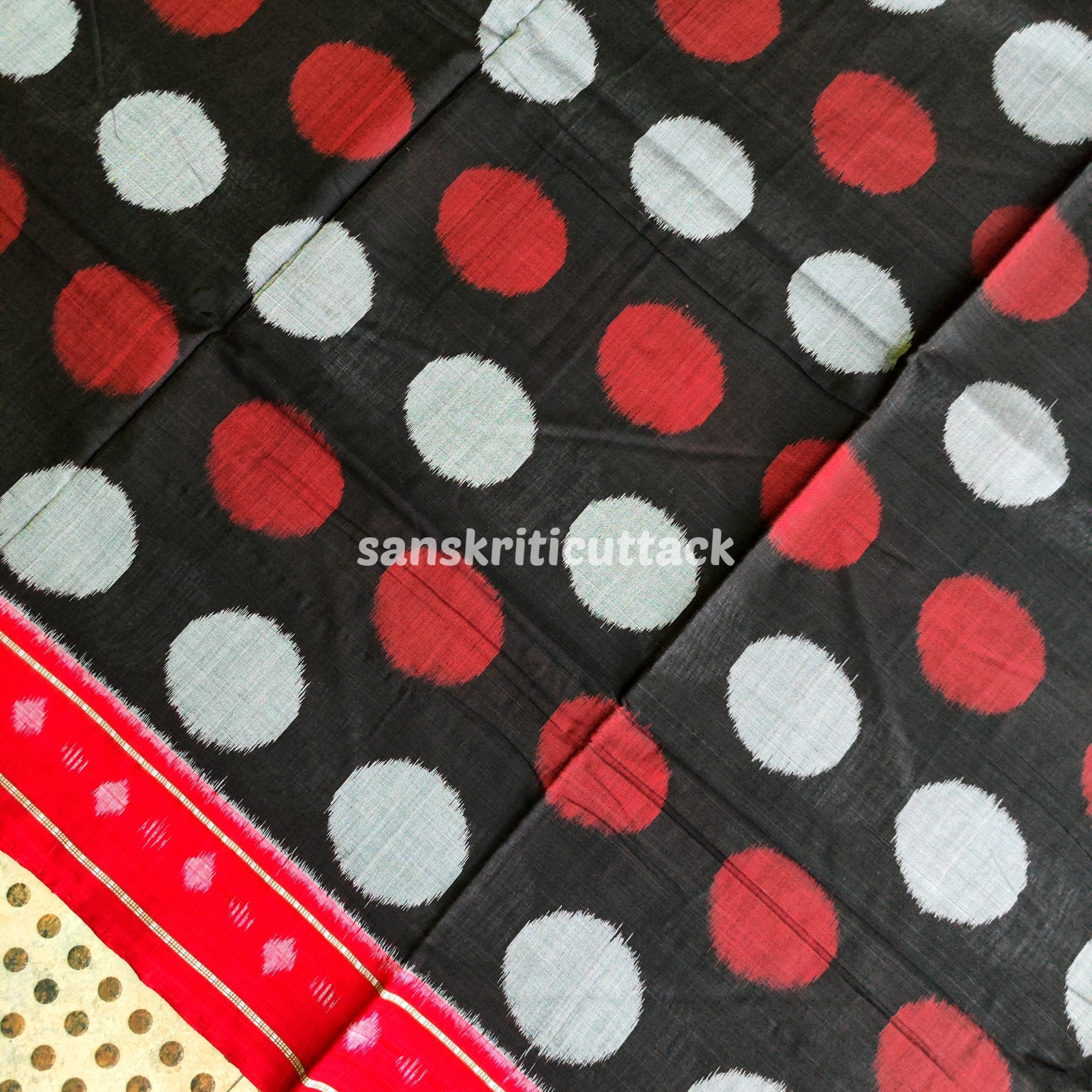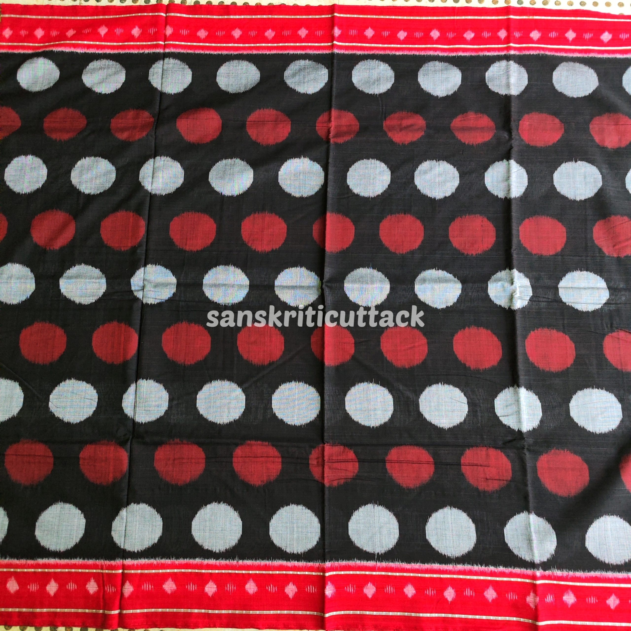 One of the most popular designs is the Black maroon Big Polka Dot Nuapatna Ikat Cotton Saree without Blouse. This saree is perfect for any occasion and will make you stand out in the crowd. The black and maroon combination with the big polka dots is a classic design that never goes out of style.