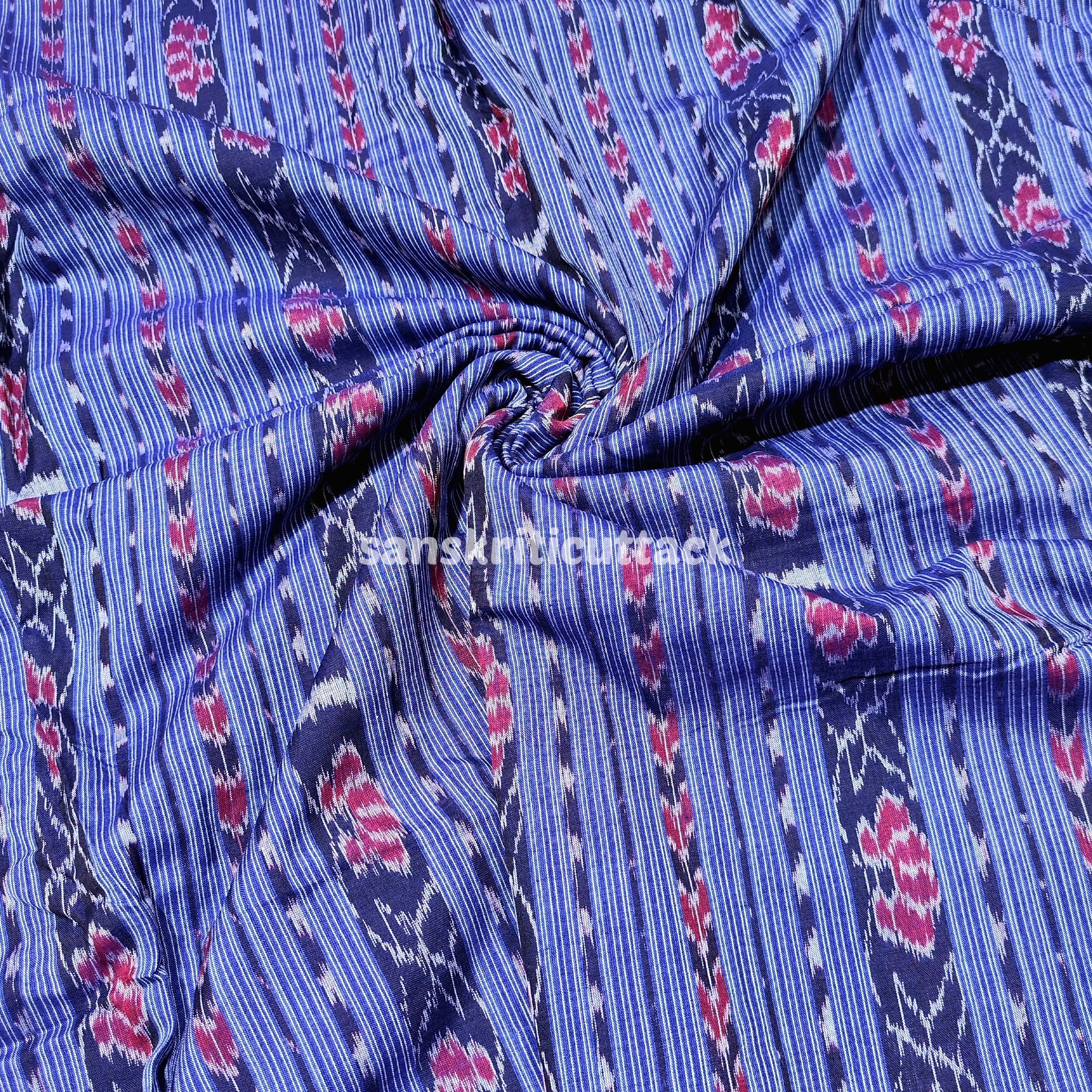 The Handloom Blue Flower Sambalpuri Cotton Ikat Fabric is not only visually appealing but also environmentally friendly. Handloom weaving techniques promote sustainable practices, ensuring a positive impact on the planet while supporting local communities.