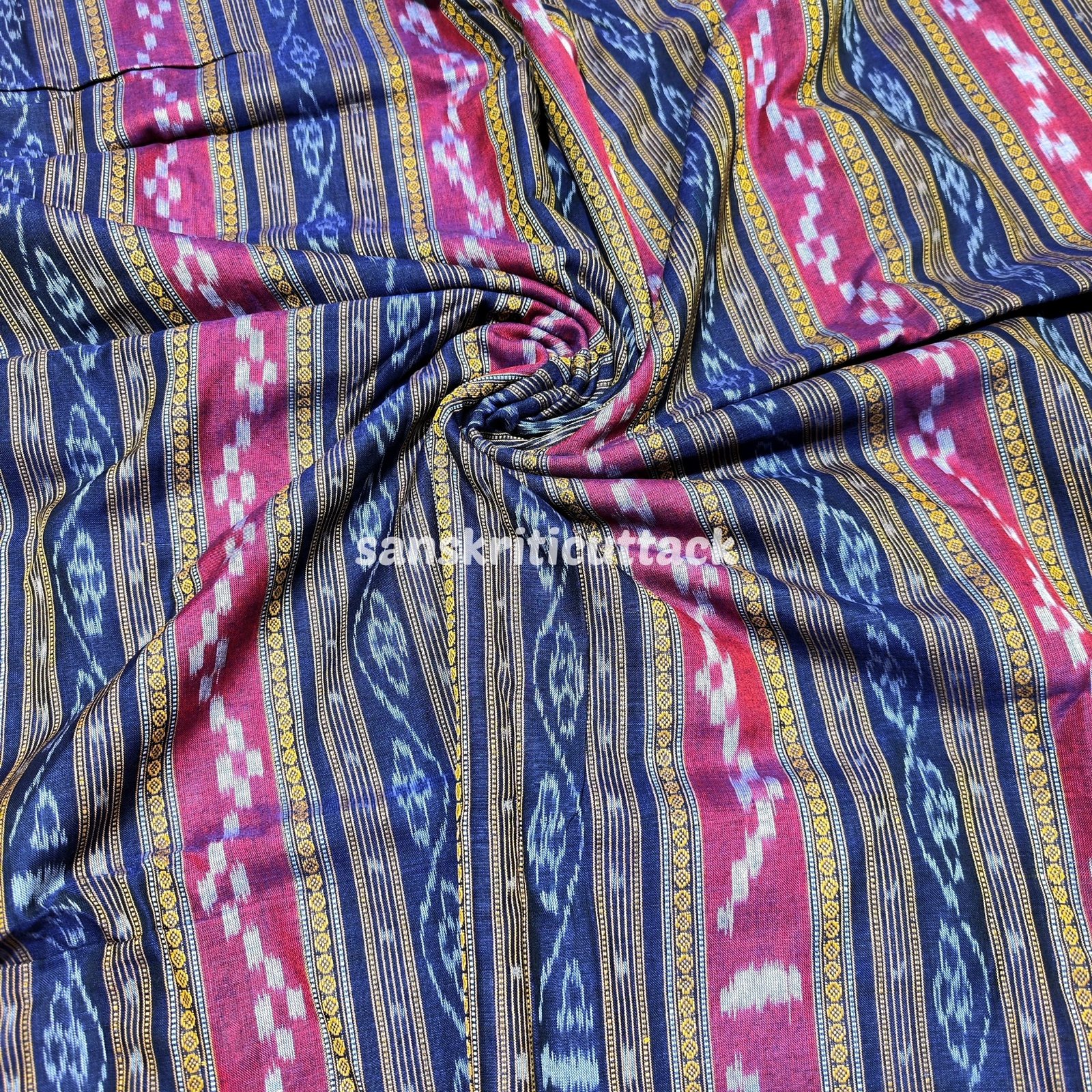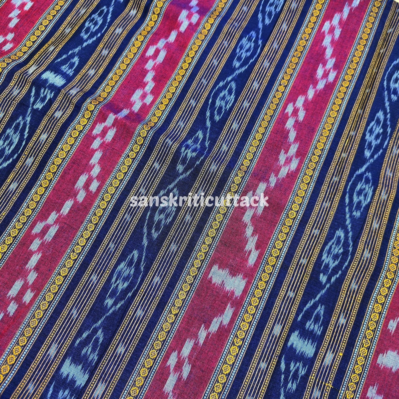 Handloom Blue Magenta Strips Sambalpuri Pasapalli Cotton Ikat Fabric
