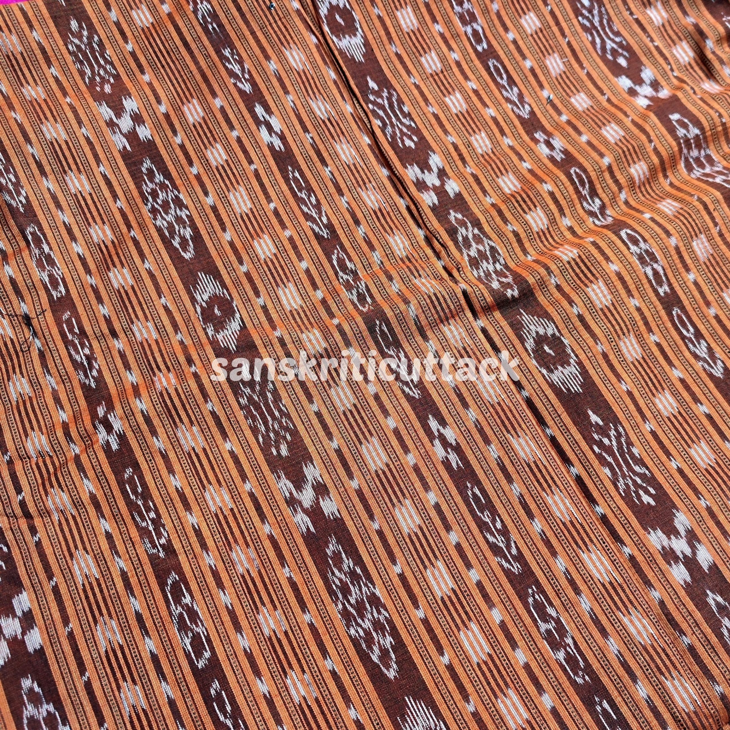 Elevate your textile projects with our exquisite Handloom Brown Stripes Sambalpuri Cotton Ikat Fabric. Crafted with precision and infused with rich cultural heritage, this premium quality fabric is a testament to the traditional artistry of Sambalpuri weavers. With its distinctive brown stripes and intricate ikat patterns, this fabric is perfect for creating stunning garments, home decor items, and accessories. Experience the beauty of handloom craftsmanship and bring a touch of elegance to your creations with this remarkable fabric.