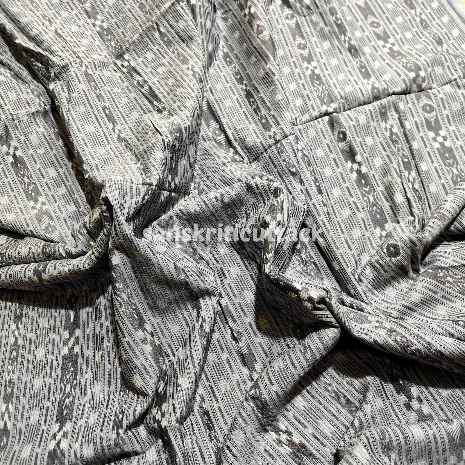 Handloom Grey Stripes Sambalpuri Cotton Ikat Fabric