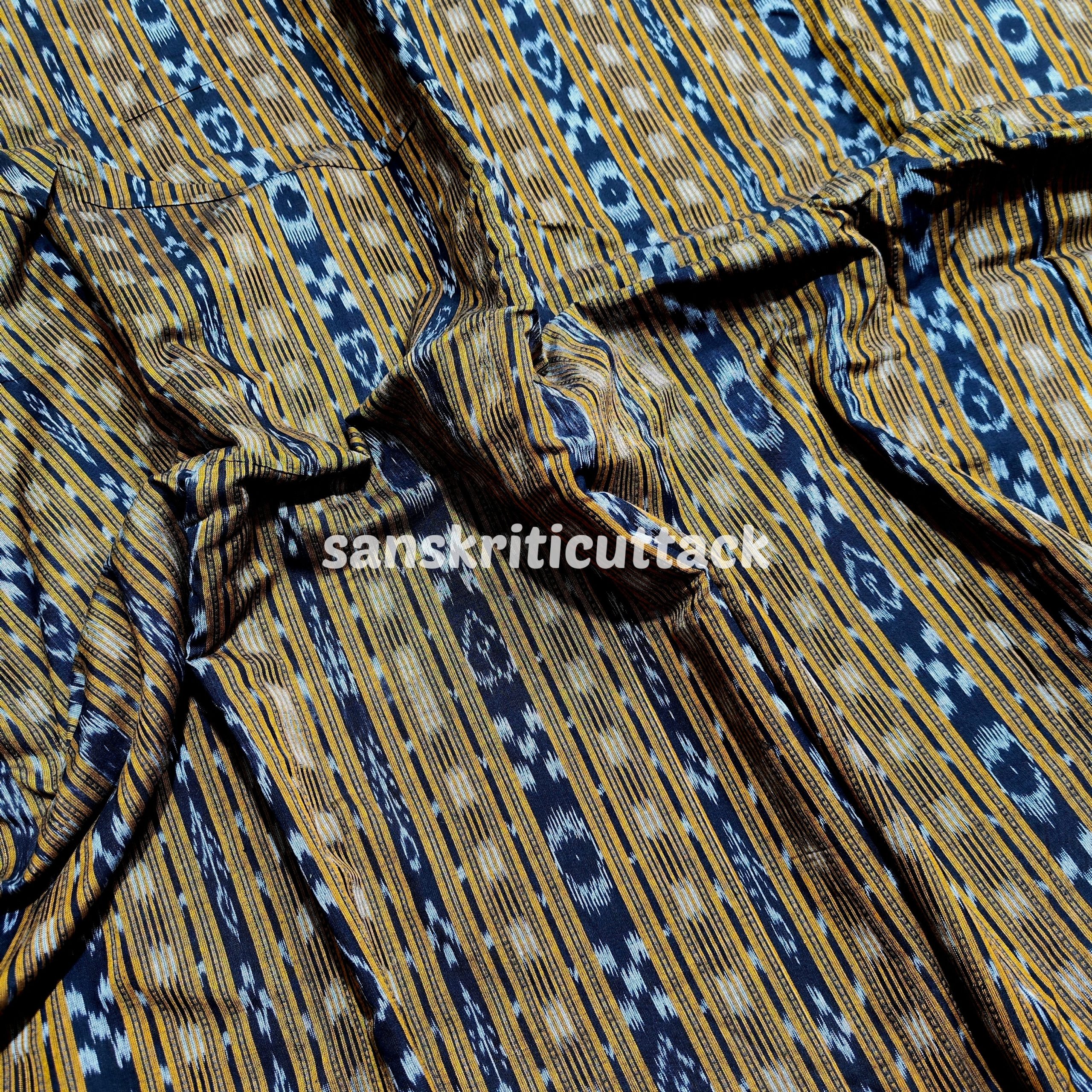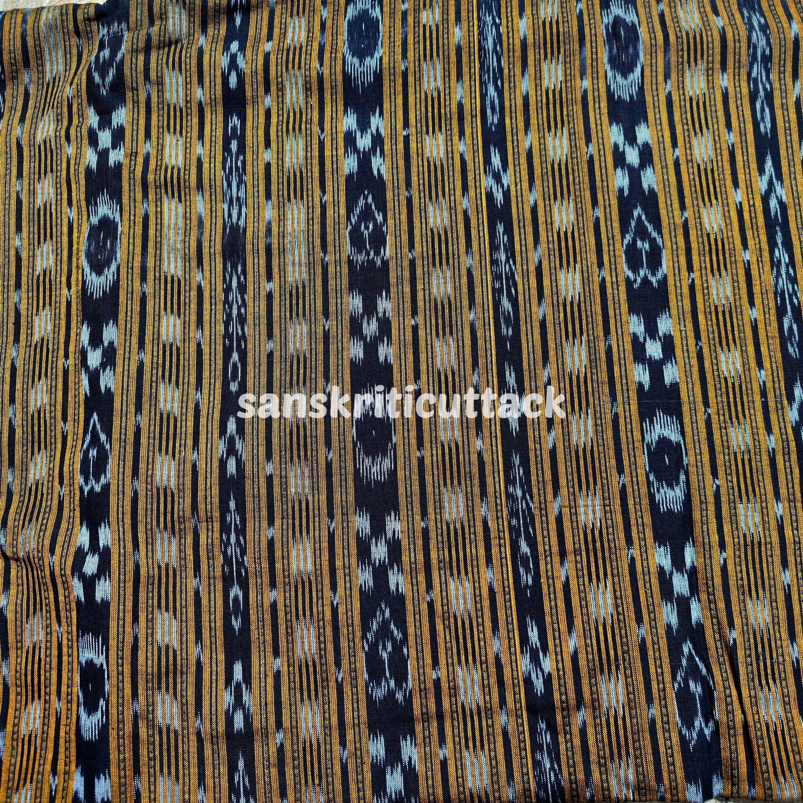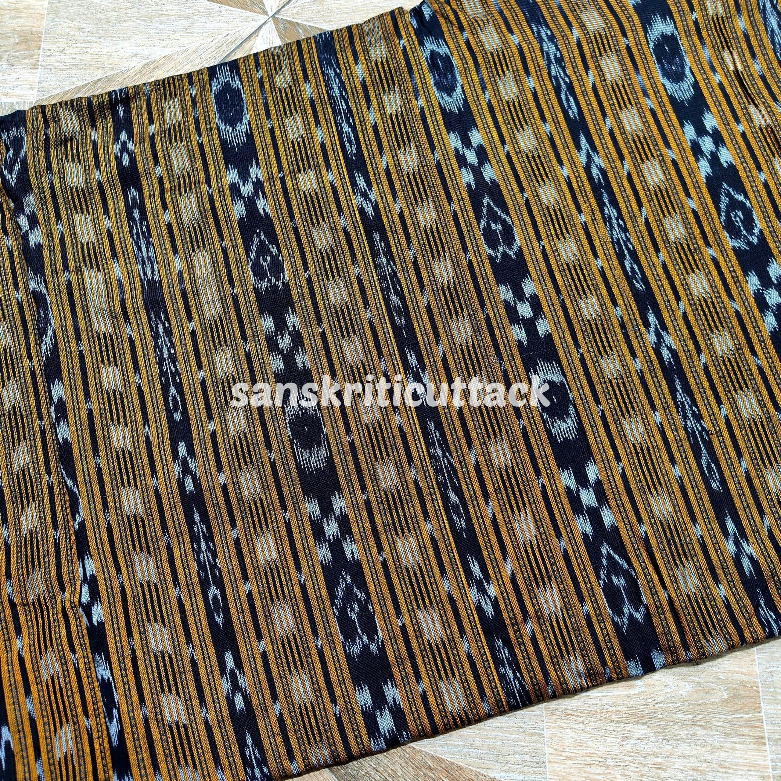 Elevate your fashion creations with our Handloom Mustard Stripes Sambalpuri Cotton Ikat Fabric. Meticulously woven by skilled artisans, this fabric showcases a harmonious blend of traditional craftsmanship and contemporary design. The striking mustard stripes on a rich cotton base exude an aura of sophistication, making it perfect for both formal and casual wear. Experience the unmatched comfort and breathability of handloom cotton, while adding a touch of timeless elegance to your wardrobe. Shop now and unleash your creativity with this exquisite handloom fabric.