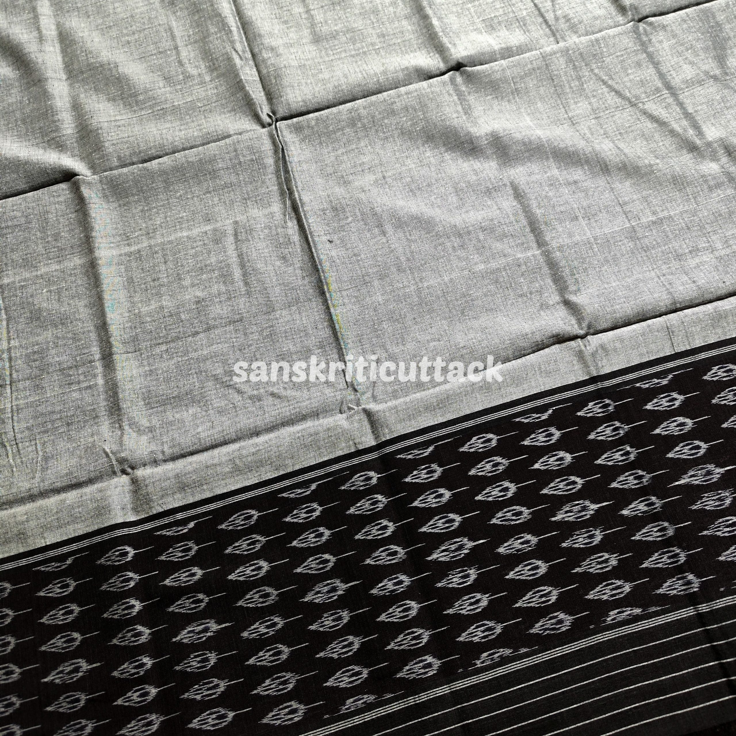Elevate your ethnic wardrobe with our Handloom Sambalpuri Ikat Cotton Black Grey Dress Material. This enchanting ensemble effortlessly combines traditional craftsmanship with contemporary style.