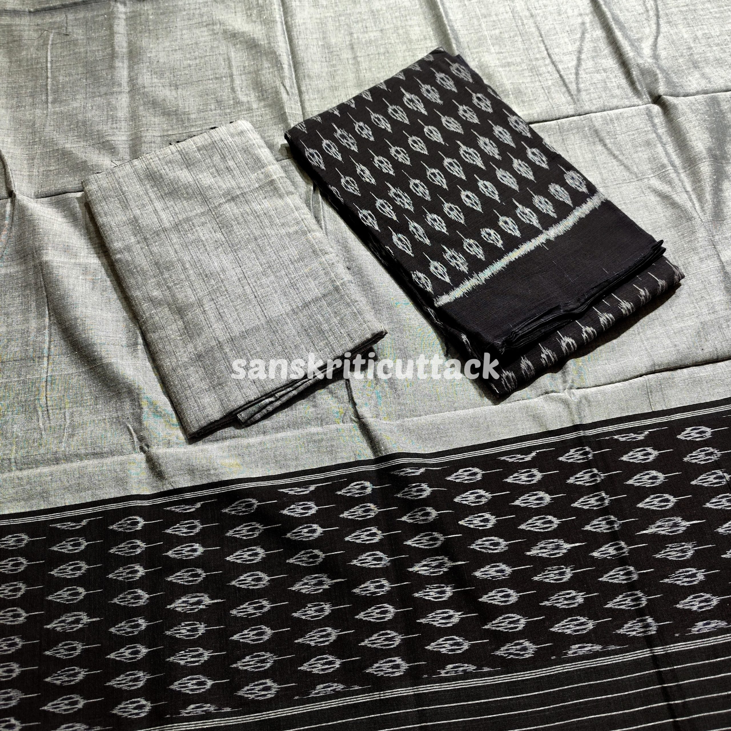 Embrace the essence of tradition and grace with our Handloom Sambalpuri Ikat Cotton Black Grey Dress Material. Unleash your creativity by customizing the outfit to your desired style, and revel in the elegance it exudes. Shop online for this unstitched dress material today and let your unique personality shine through.