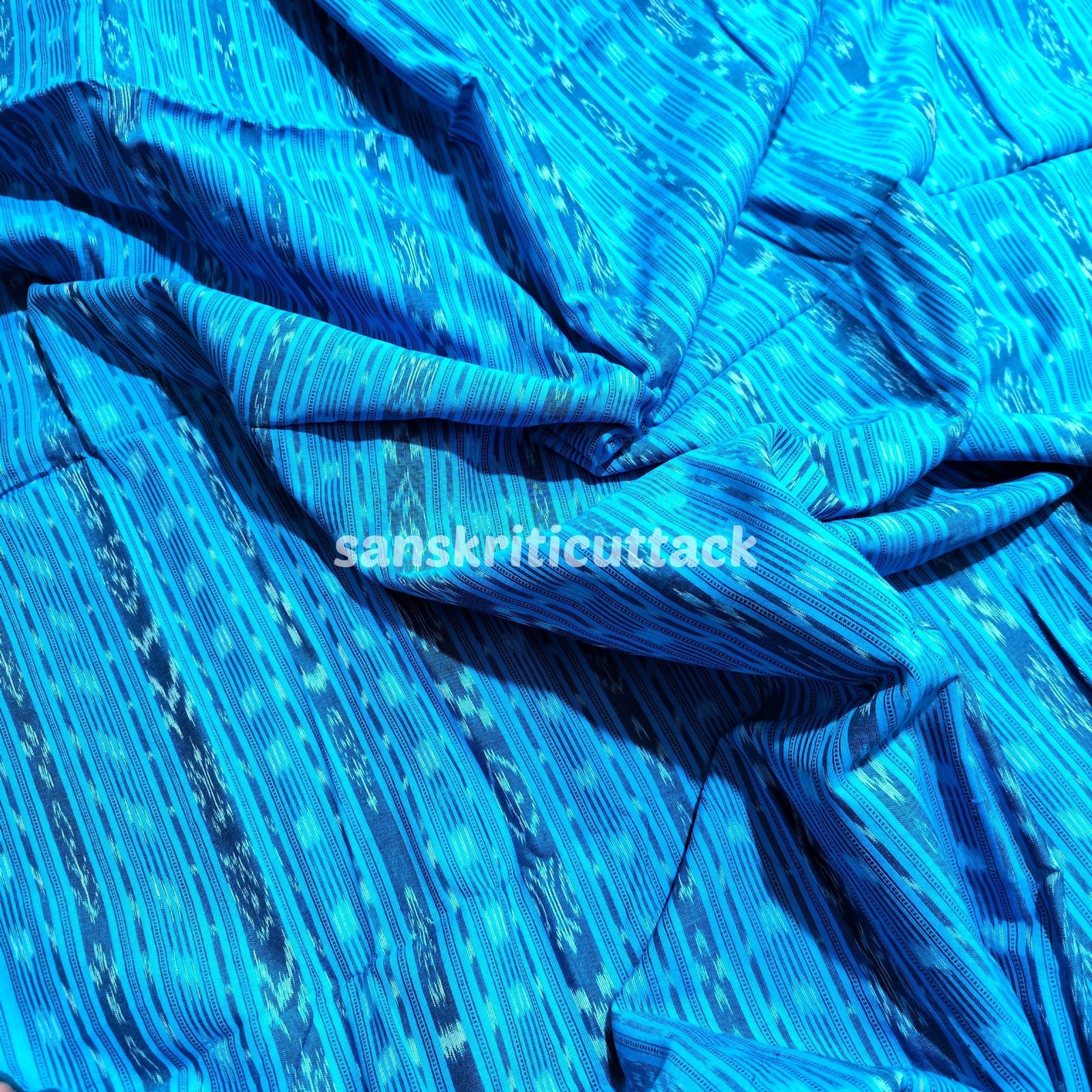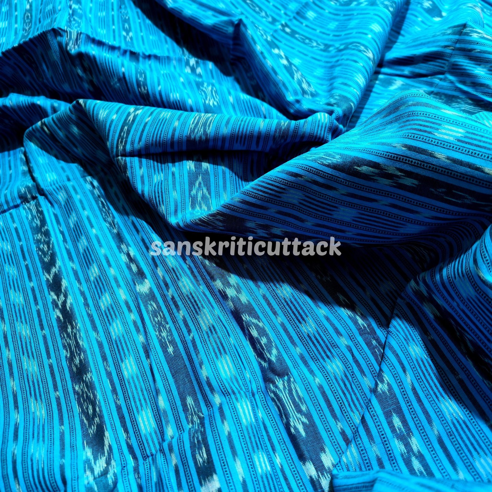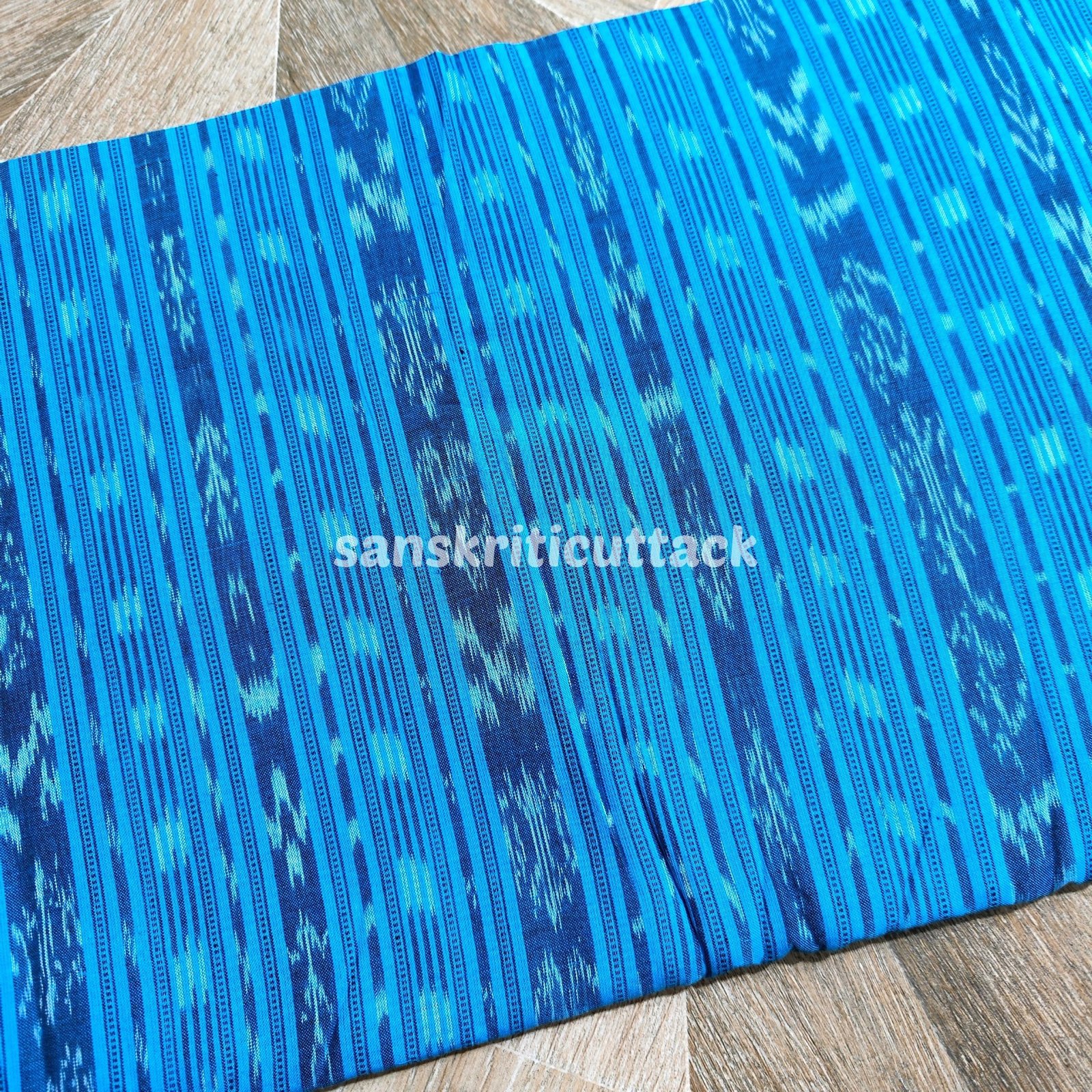 Discover the exquisite charm of our Handloom Sky Blue Stripes Sambalpuri Cotton Ikat Fabric. Handcrafted with meticulous attention to detail, this fabric showcases a beautiful combination of sky blue hues with delicate stripes, representing the timeless artistry of Sambalpuri handloom weaving.