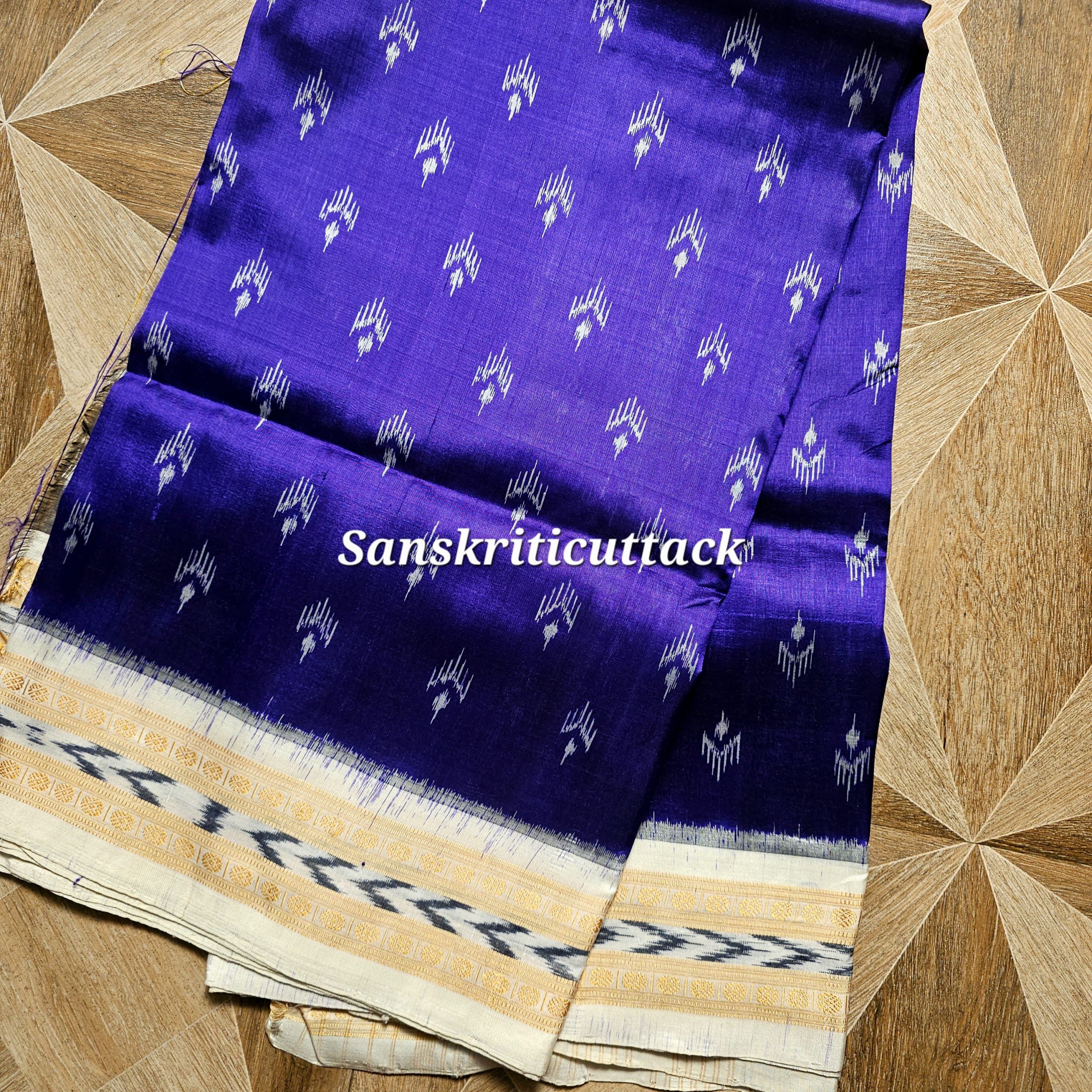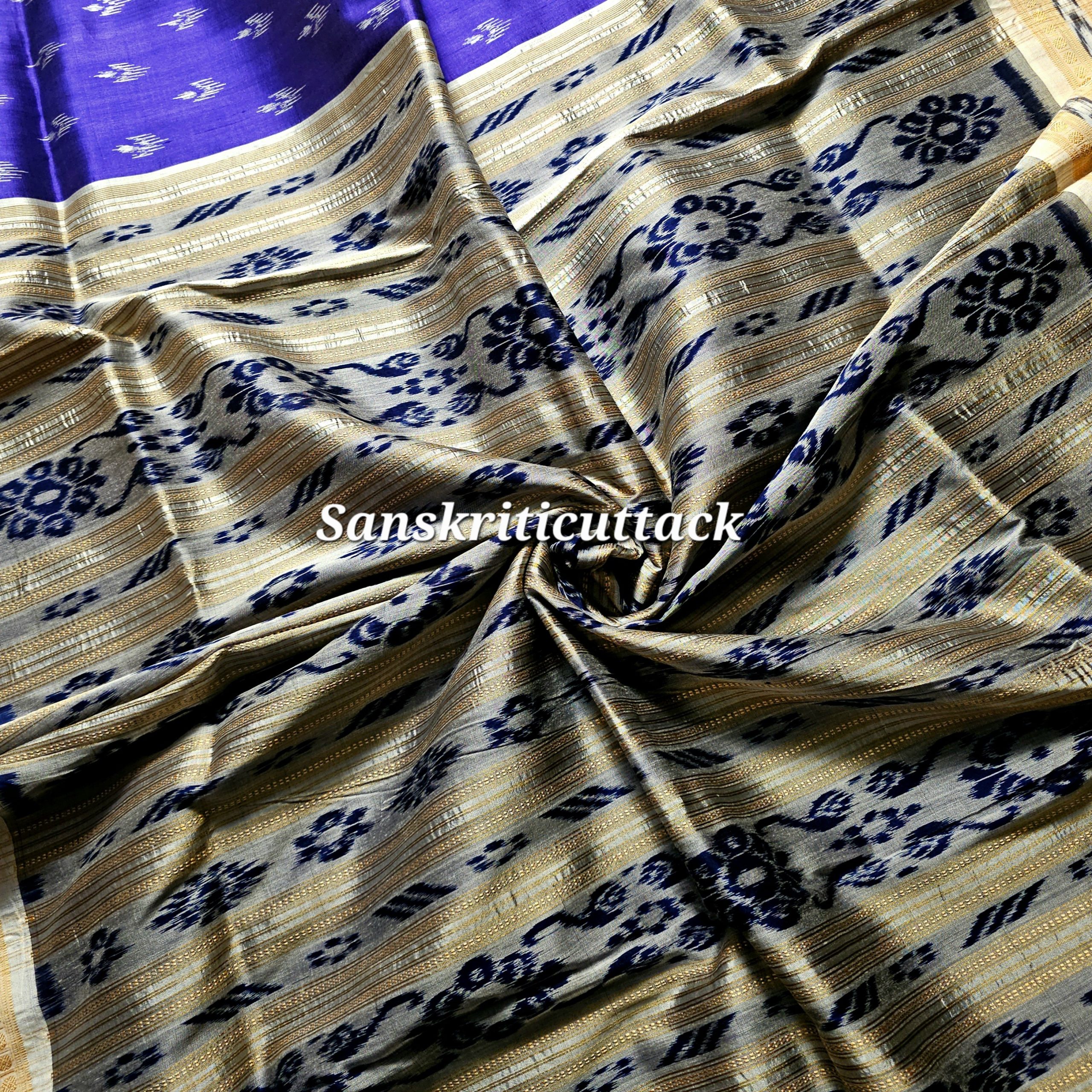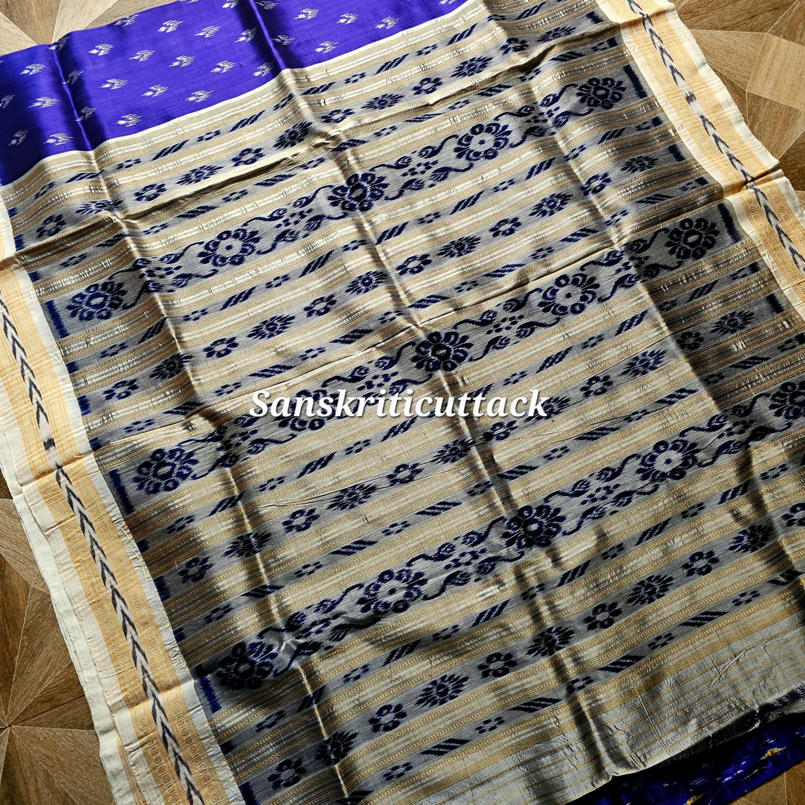 The Ink Blue Mayur Chandrika Khandua Silk Saree reflects refined elegance rooted in Odisha Handloom artistry.