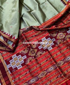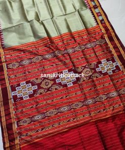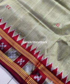 Discover the allure of our Ivory Maroon Border Pasapalli Khandua Silk Saree. The ivory body, adorned with petite butis, creates a subtle canvas for the striking Maroon Kumbha border. Elevate your style with the richness of this traditional weave, while the Maroon Pallu adds a touch of regality. Handcrafted to perfection, this saree epitomizes elegance and cultural finesse, making it a perfect choice for special occasions.