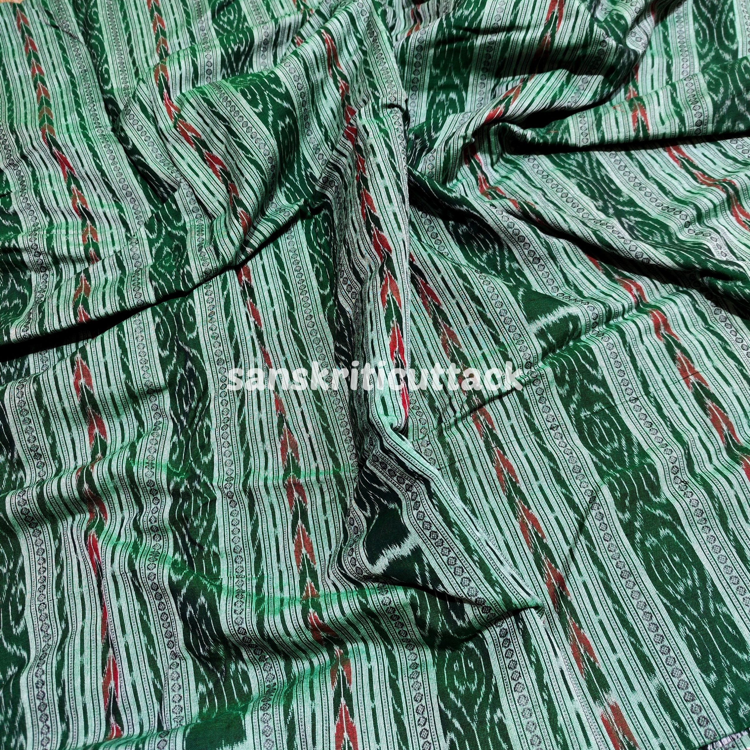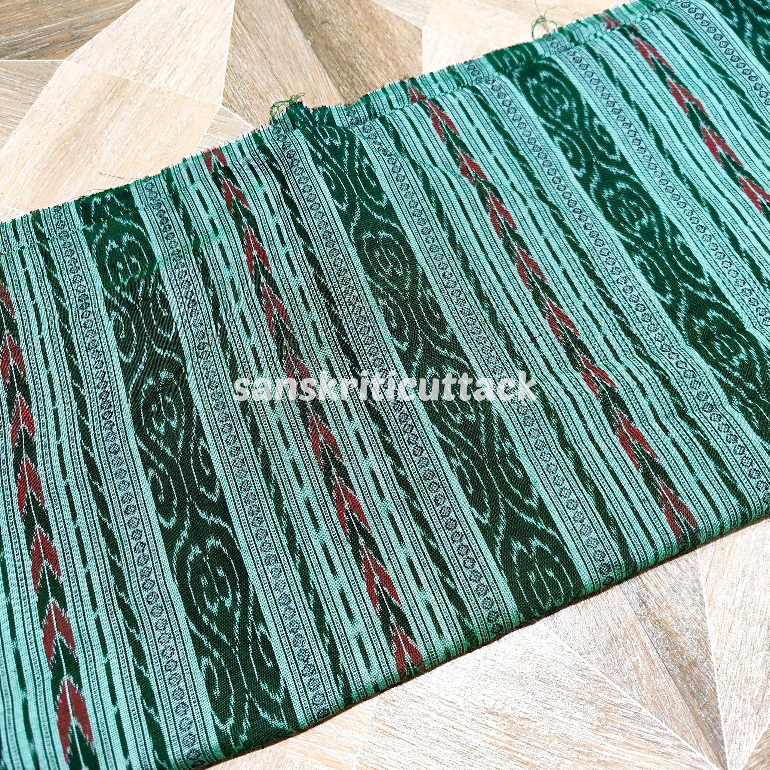 This exquisite handloom cotton fabric showcases a beautiful light green hue with traditional Ikat patterns, handwoven by skilled artisans in Sambalpur, India. Made using natural dyes and eco-friendly processes, this sustainable fabric is both soft and vibrant, making it perfect for creating unique Ikat clothing and accessories. Whether you’re a fashion designer or a sewing enthusiast, this colorful and artisanal Ikat fabric is sure to inspire your creativity. Elevate your next project with this one-of-a-kind light green Handloom Cotton Sambalpuri Ikat Fabric.