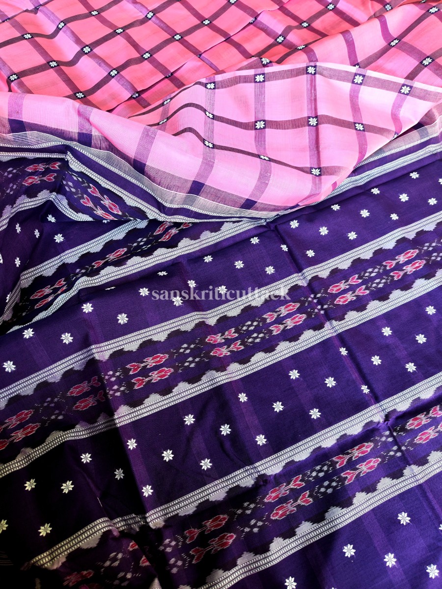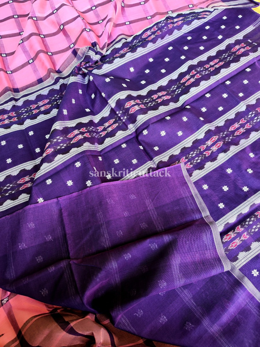 Elevate your traditional look with our Light Pink Purple Silk Cotton Bapta Saree. Order now and embrace the grace of Bapta saree.