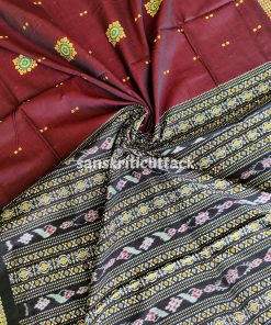 Embrace classic elegance with our Maroon Black Bomkai Cotton Saree. Meticulously handwoven, this saree showcases intricate maroon patterns on a black canvas, while the stunning black pallu and border add a touch of sophistication. The lightweight and breathable cotton fabric ensures comfort throughout the day. Whether it’s a formal event or a casual gathering, this saree is a versatile choice. Please note, this saree comes without a blouse piece, allowing you to pair it with your favorite blouse for a personalized look. Elevate your style and make a statement with this exquisite piece that seamlessly blends tradition with modernity.