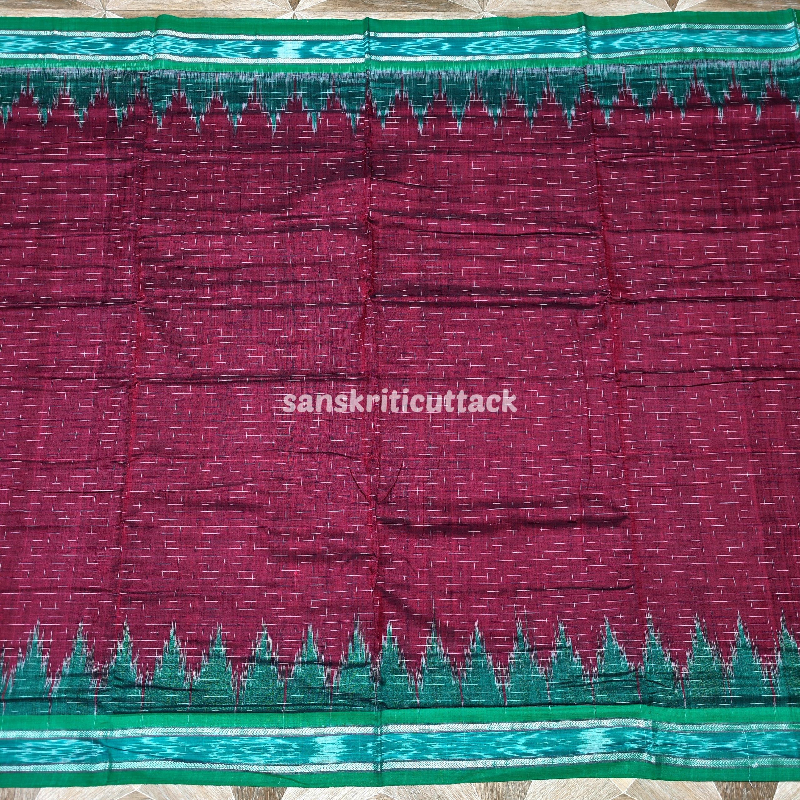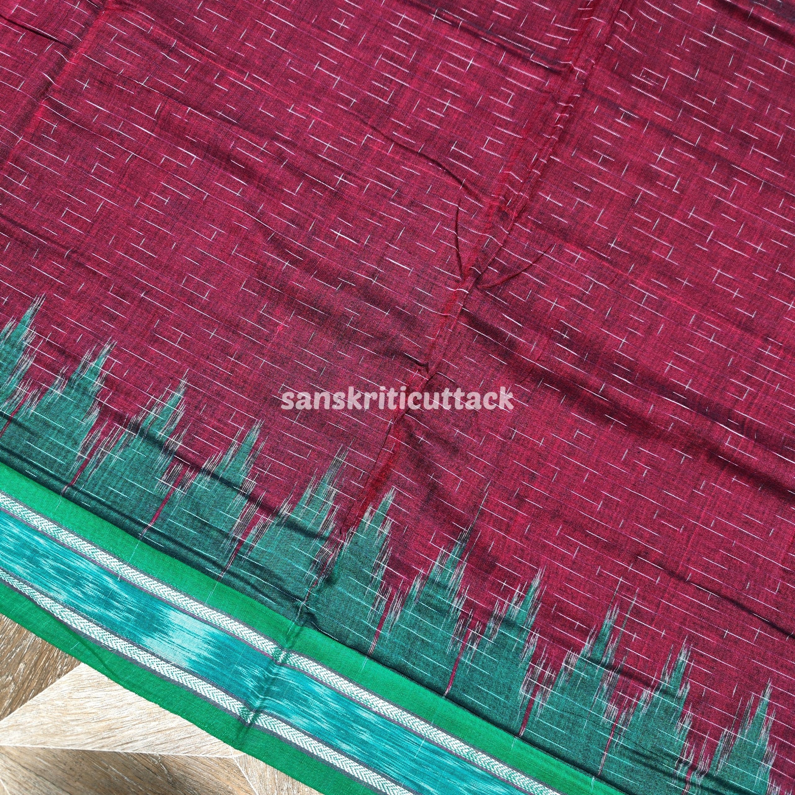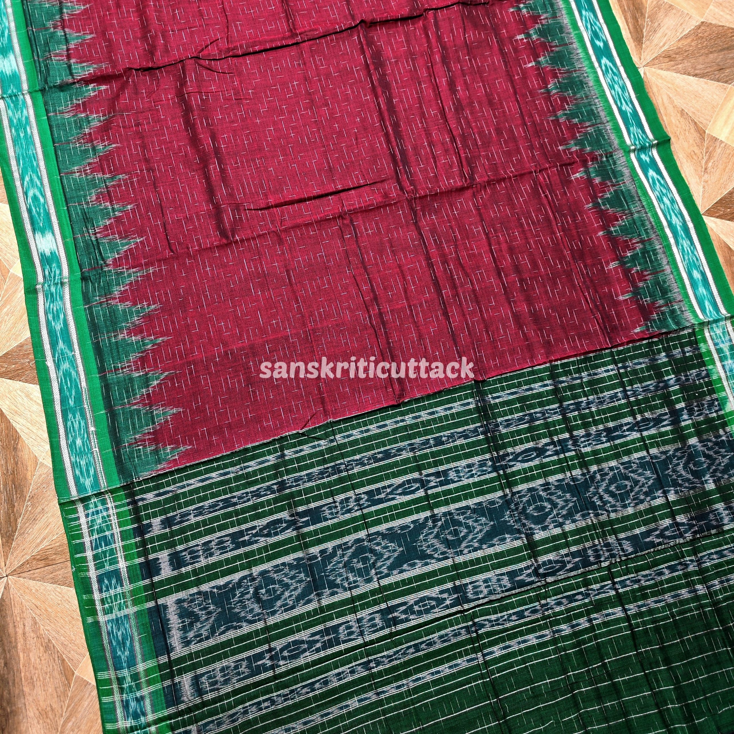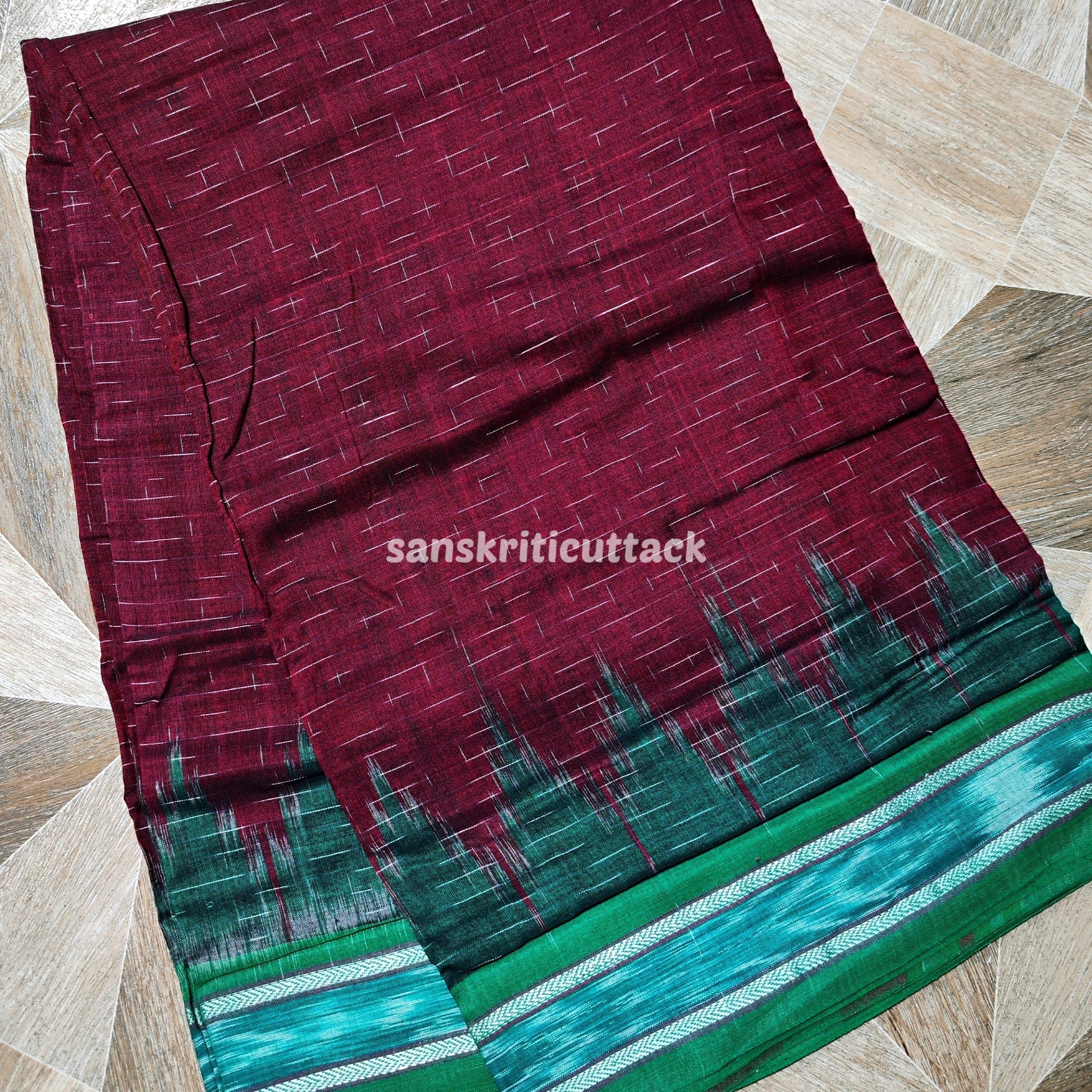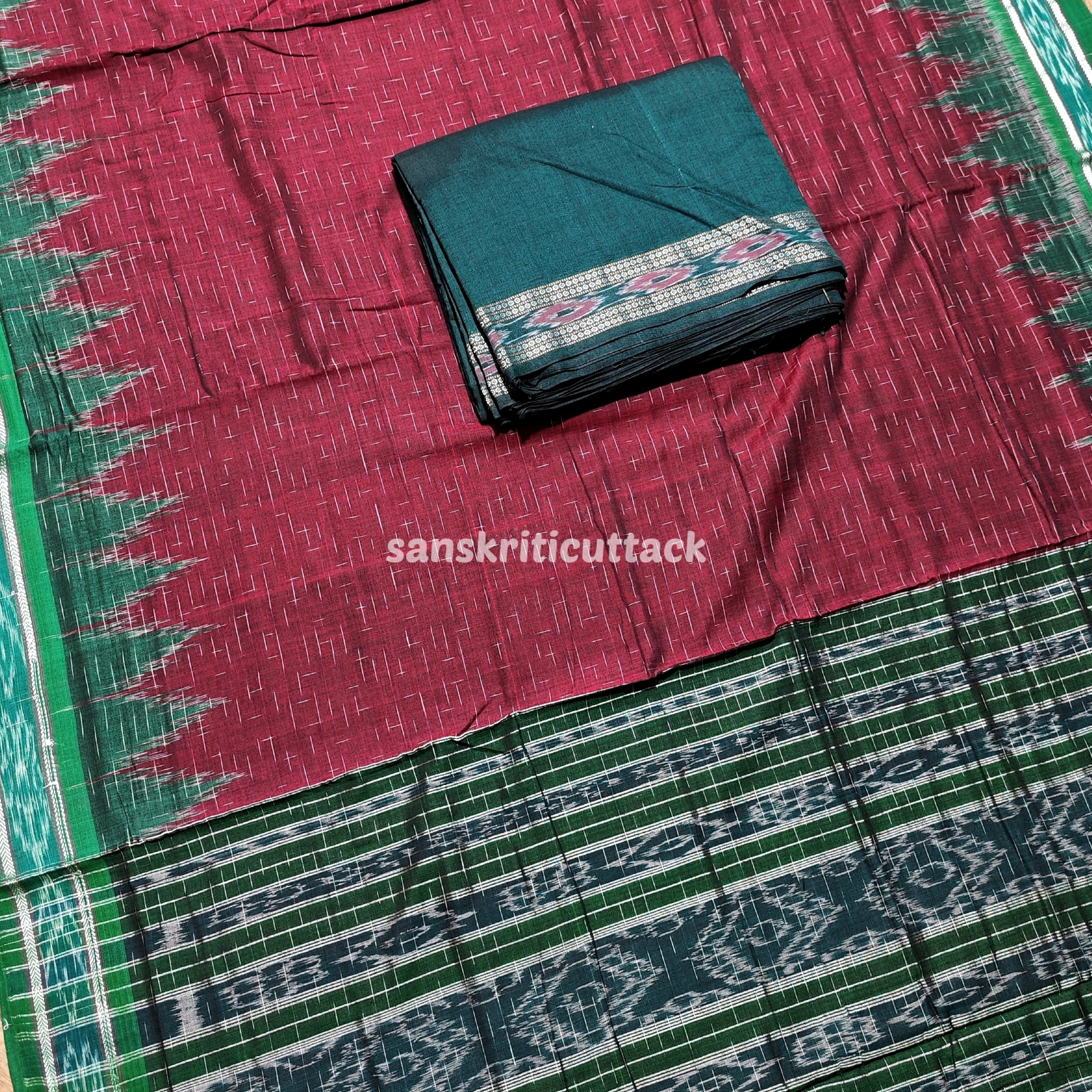 Discover the elegance of traditional craftsmanship with our Maroon Green Jharna Handloom Ikkat Cotton Khandua Saree. Woven by skilled artisans, this saree blends intricate ikkat patterns with rich maroon and green hues, making it the perfect choice for any festive or formal occasion. Crafted from pure cotton, it offers a comfortable yet stylish drape that’s lightweight and breathable, ideal for all-day wear. The exquisite handloom finish ensures that each piece is unique, reflecting the cultural heritage of Odisha.