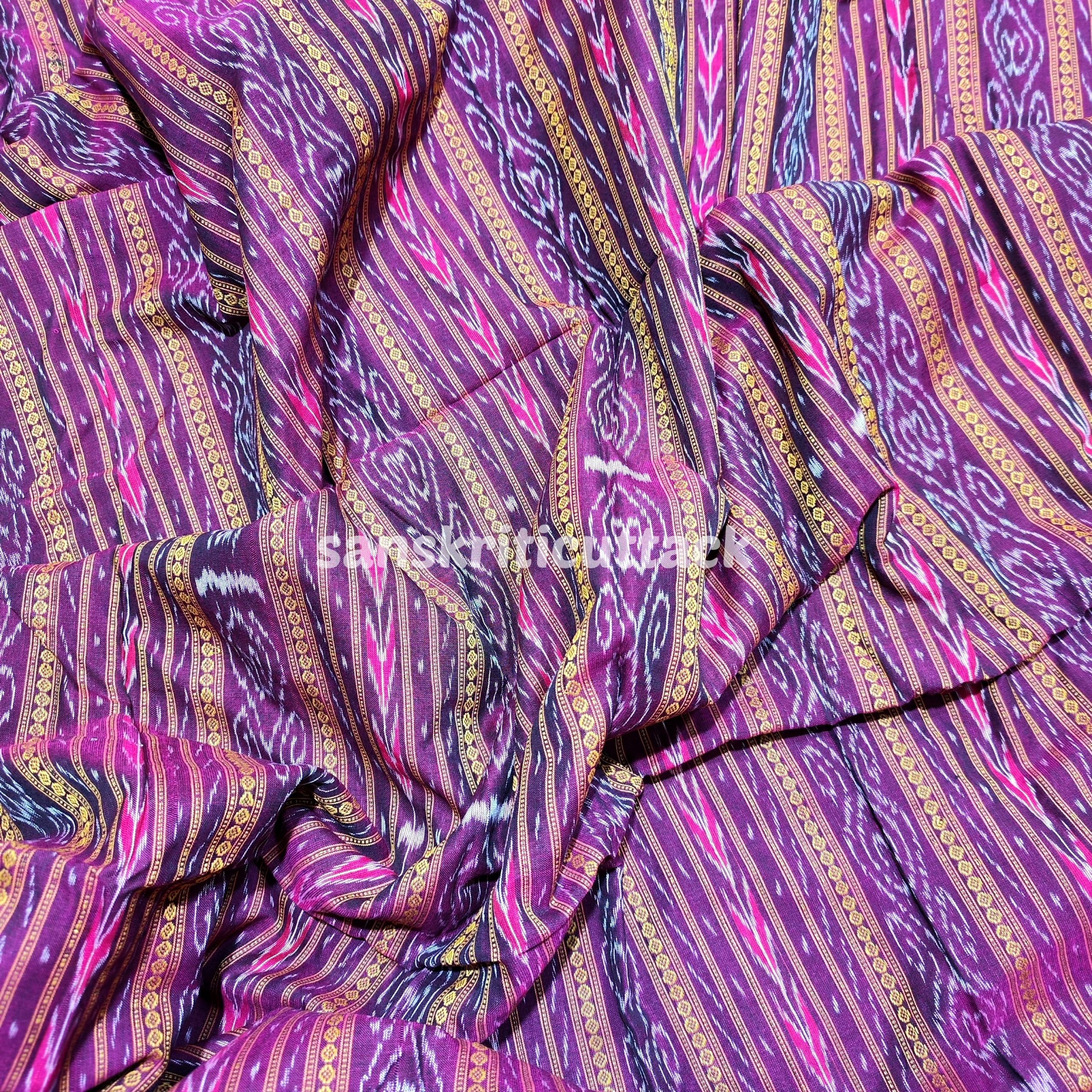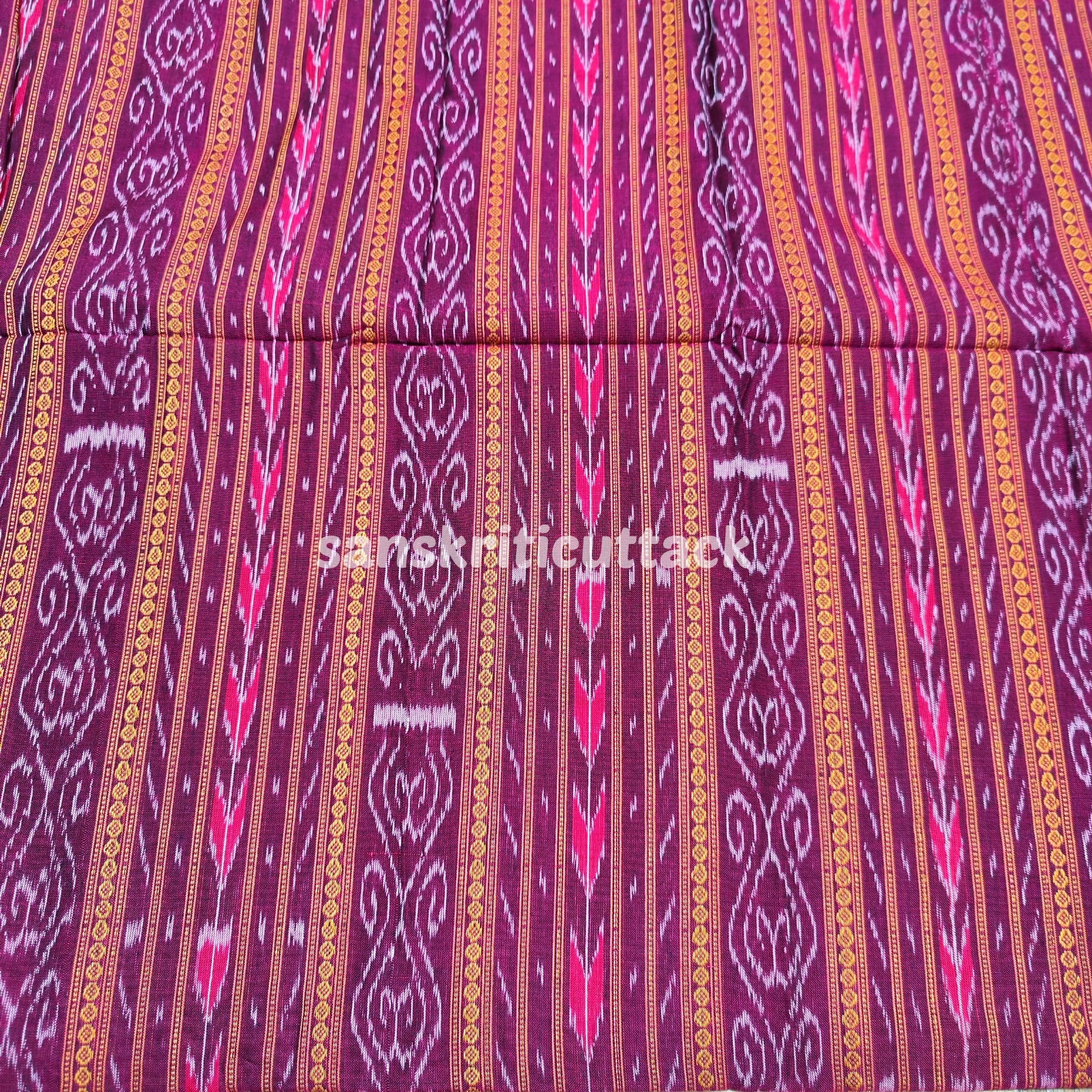 This Mauve Handloom Cotton Sambalpuri Ikat Fabric is a versatile and lightweight fabric that is perfect for textile projects. Handwoven with Ikat technique, this fabric features intricate Sambalpuri Ikat patterns in joyful colors. Made from pure cotton, this fabric is breathable and comfortable to wear. It is also great for home decor making and accessories making. This Mauve Handloom Cotton Sambalpuri Ikat Fabric is a stunning creation made by skilled artisans using a traditional Ikat weave. The fabric is made with soft and breathable cotton and features a beautiful Ikat pattern that is created using a resist dyeing technique with natural dyes. The unique Ikat design and vibrant mauve color make this fabric perfect for creating ethnic wear and other fashionable items. The fabric is lightweight and durable, ensuring that it will last for a long time. Our artisanal Ikat fabric is produced sustainably, using eco-friendly materials and techniques. Each piece is handmade with care and attention to detail, ensuring that you receive a high-quality fabric that celebrates India’s rich cultural heritage. Whether you’re looking for a sustainable and eco-friendly addition to your wardrobe or textile collection, this Mauve Handloom Cotton Sambalpuri Ikat Fabric is a perfect choice. Its unique Ikat design and soft cotton texture make it a versatile fabric that can be used for clothing, home decor, and other textile creations.