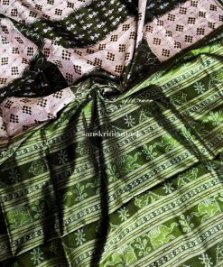 Inspired by the intriguing word “PASA,” denoting chessboard gambling games, PASAPALLI carries a legacy of its own. This saree narrates a tale of cultural heritage through its timeless design and meticulous craftsmanship. The pallu motifs resonate with the elegance of traditional Sambalpuri sarees, further enhancing the overall charm of this handcrafted marvel.