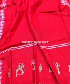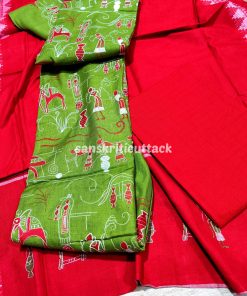 Elevate your style with our Green Red Nuapatna Embroidery Handloom Cotton Dress Material. Made with love and care by skilled artisans, this dress material showcases the rich heritage of Indian handloom and embroidery.