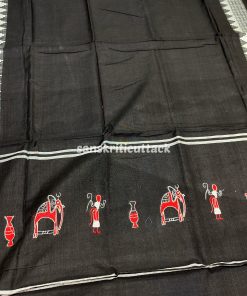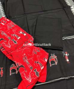 Red Black Nuapatna Embroidery Handloom Cotton Dress Material