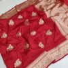 Explore our online Banarasi saree collection to discover your perfect match. The Red Katan Silk Banarasi Saree stands as a testament to meticulous craftsmanship and impeccable design – a coveted essential for every saree aficionado.